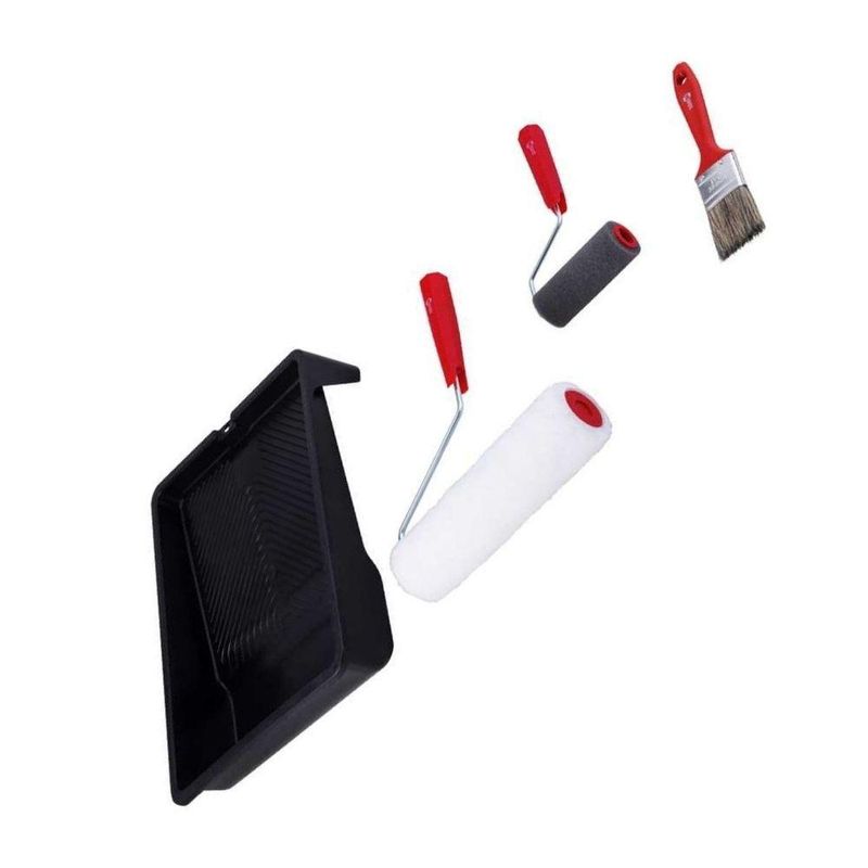 Conjunto Para Pintura 5 Peças Nove54Código do Fornecedor: 6241005000Marca: Nove54Conteúdo da embalagem: 1 Conjunto Para Pintura 5 Peças Nove54Destaques e diferenciais: Evita respingos, proporcionando ótimo rendimento e acabamento.Aplicações e dicas de uso: Indicado para utilização em pinturas residenciais e pequenos reparos.Garantia legal: 90 diasDetalhes TécnicosQuantidade de peças do kit: 5 peças Largura do rolo para pintura: 23 cm (lã) / 9 cm (espuma) Composição (jogo): 1 bandeja de pintura 23 cm, 1 pincel 1.1/2, 1 rolo de espuma 9 cm, 1 suporte para rolo 23 cm e 1 rolo de lã 23 cm Cor da bandeja plástica para pintura: Preta Largura da bandeja plástica para pintura: 38 cm Material do rolo para pintura: Lã e Espuma Suporte do rolo para pintura: Com suportes Material das cerdas do pincel: Sintética Altura das cerdas do pincel: 44 mm Cor das cerdas do pincel: Gris Largura do pincel: 1.1/2 - 38 mm Cor do cabo do pincel: Vermelho Massa aproximada (peso) (kg): 0,460 kg Produto: Conjunto | Tipo do produto: Conjunto