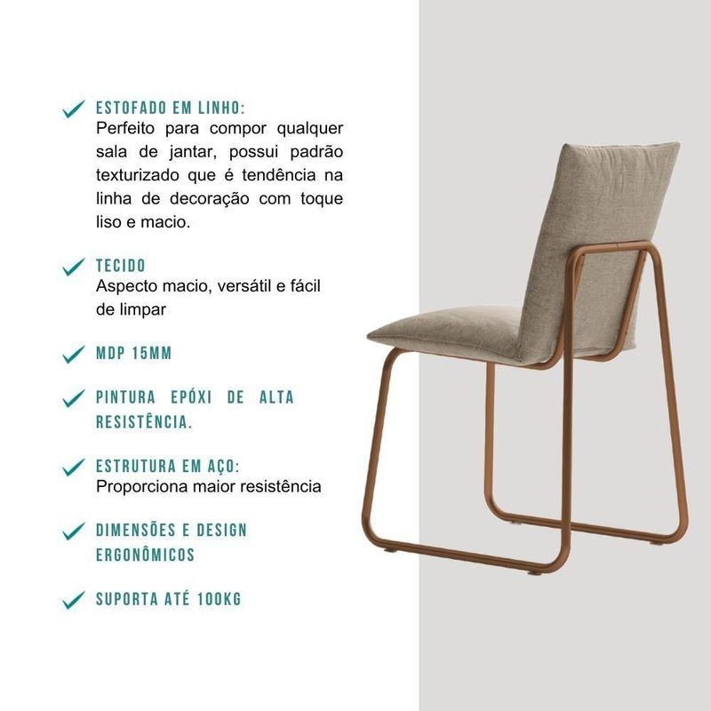 Conjunto Sala De Jantar 4 Cadeiras Monte-carlo Carraro Pet RosO Conjunto Monte-Carlo traz elegância e atemporalidade para a sua sala de jantar, deixando o ambiente agradável e combinando com a sua decoração já existente. As cadeiras, com seu encosto anatomicamente moldado, garantem um conforto e ergonomia. Ao combinar com a mesa, o tampo de madeira proporciona sensação de leveza e com a natureza, deixando o ambiente ainda mais agradável. Com materiais de proteção, tanto cadeiras quanto a mesa possuem ponteira plástica e são produzidas com estrutura de tubo de aço, proporcionando muito mais resistência.Especificações Mesa:Medidas: Largura: 120 cm | Altura: 76,5 cm | Profundidade: 80 cmPeso: 19,6 KgTampo: BP 40mmEstrutura: Tubo de Aço 40x40mmEspecificações Cadeira:Medidas: Largura: 46 cm | Altura: 87 cm | Profundidade: 56 cm | Altura do assento: 48 cmPeso: 13,8 KgEstrutura: Tubos de açoAssento: EstofadoEncosto: EstofadoPonteira: PlásticaMontagem: SoldadaPeso suportado: Até 100 KgGarantia:Os produtos possuem garantia de 03 meses (se em condições normais), contra de fabricação, ou componentes utilizados.Esta garantia não cobre defeitos por uso inadequado ou excessivo, falta de cuidados e desbotamento natural dos revestimentos.Condições de perda da garantia:- Mau uso ou manuseio incorreto.- Desbotamento causado pela exposição direta da luz solar.- Danos causados por agentes da natureza, como inundações ou acidentes de qualquer espécie.- Uso indevido de produtos abrasivos para realizar a limpeza.- Decurso do prazo estabelecido.Recomendações para uma boa conservação:- Dicas para limpeza e conservação do seu produto, você encontrará no esquema de montagem que o acompanha.Informações importantes:- Trabalhamos para apresentar imagens fiéis ao produto real. Porém, as cores podem sofrer variações de acordo com o monitor, iluminação do ambiente em que se encontram e até por sua percepção visual comparado ao ambiente residencial.- Desta forma, as imagens são meramente ilustrativas.- Todos os objetos decorativos não acompanham o produto.- O produto acompanha manual com instruções para a montagem.- A empresa Móveis Carraro não realiza o serviço de montagem.PERGUNTAS FREQUENTES- Existem outras cores disponíveis?Não, este produto possui disponível apenas a cor descrita nesse anúncio.- Vocês entregam para todas as regiões do ? De que forma é feita a ?Sim, entregamos para todas as regiões do . E a é realizada por transportadoras parceiras.- Este produto é ou ?Todos os nossos produtos são novos. E acompanham e certificado de garantia.- Recebo o produto montado?Não, este produto é enviado desmontado. Junto com ele é enviado manual com instruções para a montagem.- Vocês realizam a montagem do produto?Não possuímos o serviço de montagem. Altura das cadeiras: 87 cm | Estado de Origem: RS | Família da Cor: Bege | Cor: Areia | Peso: 33,4 | Código universal de produto: 2999 | Fabricante: Móveis Carraro | Marca: Carraro | Profundidade das cadeiras: 56 cm | Quantidade de cadeiras: 4 | Largura das cadeiras (cm): 46 cm | Altura da mesa (cm): 76,5 cm | Comprimento da mesa (cm): 120 cm | Material das cadeiras: Tecido | Modelo: Monte-Claro | Requer montagem: Sim | Formato da mesa: Retangular | Largura da mesa (cm): 80 cm | Material da mesa: MDP | Altura (cm): 87 cm | Largura do produto (cm): 120 cm | Profundidade (cm): 80 cm | Produto: Conjunto de Mesa e Cadeira | Nome Simples no Fornecedor: Conjunto Sala de Jantar 4 Cadeiras Monte-Carlo Carraro Pet Ros | Instruções/Cuidados: Limpeza com pano seco. | Conteúdo da Embalagem: 1 Conjunto Sala de Jantar 4 Cadeiras Monte-Carlo Carraro Pet Ros | Peso do Produto com Embalagem (kg): 33,4 kg | Altura do Produto com Embalagem (cm): 33 cm | Largura do Produto com Embalagem (cm): 93,9 cm | Comprimento do Produto com Embalagem (cm): 163,9 cm | Descrição do Tamanho: 87 cm x 80 cm x 120 cm | PrazoExp: 2 | Material para Filtro: Aço