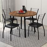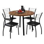 Conjunto Sala De Jantar 6 Cadeiras Austin Carraro Nogal PretoO Conjunto Sala de Jantar Austin 4 Cadeiras Carraro é uma fusão de conforto e estilo contemporâneo. As Cadeiras 1700 apresentam assento estofado em MDP para um suporte aconchegante, enquanto suas linhas curvilíneas adicionam elegância moderna. Construídas com tubos de aço 7/8 e acabamento em pintura epóxi, combinam durabilidade e beleza, suportando até 100kg. Sapatas antirrisco e antirruído garantem praticidade e proteção ao piso. A mesa de jantar redonda 1599 acomoda 4 pessoas e é ideal para ambientes pequenos, combinando com uma variedade de estilos de decoração em casas e apartamentos modernos. A combinação do acabamento BP e tubos de aço traz uma sensação de aconchego ao ambiente.Especificações da Mesa:Medidas totais: Largura: 99 cmAltura: 76,5 cmProfundidade: 99 cmPeso total: 19,90 KgEspecificações da Cadeira:Medidas totais: Largura: 39 cmAltura: 84,5 cmProfundidade: 45,5 cmPeso total (04 unidades): 14,16 KgEspecificações do produto: Altura das cadeiras (cm): 84,5 cmEstado de Origem: RSCor Predominante: PretoCor do tampo: NogalCor do assento: PretoCor da estrutura: PretoPeso do produto (kg): 34.06Fabricante: Móveis CarraroMarca: Móveis CarraroProfundidade das cadeiras (cm): 45,5 cmQuantidade de cadeiras: 4Largura das cadeiras (cm): 39 cmAltura da mesa (cm): 76,5 cmComprimento da mesa (cm): 99 cmMaterial das cadeiras: MetalModelo: AustinRequer montagem: SimFormato da mesa: RedondaLargura da mesa (cm): 99 cmMaterial da mesa: MDPAltura do produto (cm): 84,5 cmLargura do produto (cm): 99 cmProfundidade do produto (cm): 99 cmProduto: Conjunto de Mesa e CadeiraNome Simples no Fornecedor: Conjunto Sala de Jantar 6 Cadeiras Austin Carraro Nogal PretoInstruções/Cuidados: Limpeza com pano seco.Conteúdo da Embalagem: 1 Mesa e 4 CadeirasPeso do Produto com Embalagem (kg): 34,06 kgAltura do Produto com Embalagem (cm): 73Largura do Produto com Embalagem (cm): 70Comprimento do Produto com Embalagem (cm): 75Descrição do Tamanho: 84,5 cm x 99 cm x 99 cmPrazoExp: 2Material para Filtro: MetalTipo de Produto: DomésticoNúmero de Itens: 5Assembly Required: SimIncluded Components: Mesa e CadeirasExternal Certification: Não AplicávelFrágil: SimCadeiras com assento estofado e design curvilíneo moderno.Estrutura em tubos de aço com pintura epóxi.Acompanha sapatas que protegem o piso e evitam ruídos.Tampo em MDP 40mm, suporta até 30 kg.Cadeiras suportam até 100 Kg e tem a estrutura soldada.Model Number: 1Garantia:Os produtos possuem garantia de 03 meses (se utilizado em condições normais), contra defeito de fabricação, ou componentes utilizados.Esta garantia não cobre defeitos por uso inadequado ou excessivo, falta de cuidados e desbotamento natural dos revestimentos.Condições de perda da garantia:Mau uso ou manuseio incorreto.Desbotamento causado pela exposição direta da luz solar.Danos causados por agentes da natureza, como inundações ou acidentes de qualquer espécie.Uso indevido de produtos abrasivos para realizar a limpeza.Decurso do prazo estabelecido.Recomendações para uma boa conservação:Dicas para limpeza e conservação do seu produto, você encontrará no esquema de montagem que o acompanha.Informações importantes:Trabalhamos para apresentar imagens fiéis ao produto real. Porém, as cores podem sofrer variações de acordo com o monitor, iluminação do ambiente em que se encontram e até por sua percepção visual comparado ao ambiente residencial.Desta forma, as imagens são meramente ilustrativas.Todos os objetos decorativos não acompanham o produto.O produto é enviado desmontado.O produto acompanha manual com instruções para a montagem.A empresa não realiza o serviço de montagem.
