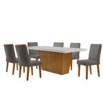 Conjunto Sala De Jantar Mesa Aida 180 Cm E 6 Cadeiras Lunara Vel.grafite Off White Imbuia Serig. OffConjunto Sala de Jantar Mesa Aida 180 cm com Vidro e 6 Cadeiras LunaraRenove sua sala de jantar com o Conjunto Aida e 6 Cadeiras Lunara. Combinando robustez e elegancia, a mesa Aida oferece opcoes de montagem flexiveis podendo ser escolhido o lado com pintura ripada ou pintura convencional, enquanto as Cadeiras Lunara trazem conforto e estilo com seu design minimalista. Nao espere mais para elevar a funcionalidade do seu lar!Caracteristicas:Material da Estrutura: 100MDFTipo de Acabamento: Pintura UvPossui Vidro: SimTampo canto retoDimensoes da Mesa:Altura: 80 cmLargura: 180 cmProfundidade: 90 cmDimensoes das Cadeiras:Altura: 99,5 cmLargura:42 cmProfundidade: 61cmGarantia do Fornecedor: 3 mesesInformacoes Importantes:As tonalidades das cores podem sofrer alteracao de acordo com a configuracao de cada monitor.Os objetos que ambientam as fotos nao acompanham o produto.Nao disponibilizamos a montagem do produto.Nao nos responsabilizamos por danos no produto causado por montagem.Verifique as dimensoes do produto e certifique-se que o percurso que ele fara ate o local de uso permite sua passagem.Para mais informacoes confira as politicas de entrega do site.Favor verificar o produto no ato da entrega e em caso de problemas decorrentes no transporte (arranhados, quebra, batida, amassados) deve-se efetuar a ressalva na nota fiscal para conhecimento da transportadora e comunicar imediatamente a loja.Moderna Mobilia reserva o direito de alterar as especificacoes tecnicas sem previo aviso.As medidas contidas no site podem sofrer variacoes de acordo com a montagem, tipo de costura etc.