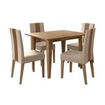 Mesa de Jantar Belle 04 Cadeiras - Design Contemporâneo Uma mesa que une elegância e funcionalidade. Seu tampo retangular amadeirado em MDP 25mm com bordas chanfradas adiciona requinte ao ambiente, enquanto a base de 4 pés garante estabilidade. Acompanhada por 04 cadeiras ergonomicamente projetadas para o seu conforto. Cadeiras Belle - Conforto e Elegância As cadeiras revestidas em tecido suede aveludado proporcionam suavidade ao toque, com detalhes em courvin no encosto para um toque de charme. Os assentos com espuma densidade D20 oferecem excelente acomodação, enquanto os pés em MDF 25mm garantem durabilidade. Durabilidade e Estabilidade Tanto a mesa quanto as cadeiras possuem sapatas plásticas que trazem estabilidade e protegem o piso. O acabamento em pintura UV não apenas preserva a cor, mas também facilita a limpeza. Embalagens cuidadosamente preparadas garantem que os produtos cheguem em perfeito estado em sua casa. Versatilidade e Qualidade Poliman Com seu design versátil, a Mesa de Jantar Belle com 04 Cadeiras se adapta a diversos ambientes. Fabricados pela Poliman, esses produtos são ecologicamente corretos e oferecem a qualidade reconhecida da marca, proporcionando não apenas beleza, mas também durabilidade e conforto.