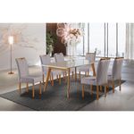 Conjunto Sala De Jantar Mesa E Cadeiras Móveis Mundial Mel/off White/cinzaConjunto Sala de Jantar 6 Lugares Mesa Slim e 6 Cadeiras em Linho Cinza - Moveis MixExclusividade de Fabrica Mesa Com 6 Cadeiras - Moveis Mix.Com os Produtos Moveis Mix Voce Leva Conforto e Beleza Para o Seu Lar. Design Moderno e Sofisticado.Informacoes Tecnicas MesaMaterial da Estrutura: Madeira Macica Eucaliptus Seca e Imunizada em Estufa.Tampo Mesa: Borda Encabecada MDF 25mm.Vidro Mesa: Vidro laqueado de 3mm.Cores da Base: MelAcabamento: Resinado e Envernizado.Cor do Tampo: Off-White.Cor do Vidro: Off-White.Necessita Montagem: Sim, necessario montador.Embalagem Tampo: Perfil tubex, papelao e plastico bolha.Embalagem Base: Papelao e plastico bolha.A base e enviada separadamente, facilitando o transporte ate o local desejado.Medidas MesaAltura aproximada: 78cm.Comprimento aproximado: 160cm.Largura (Profundidade): 90cm.Informacoes Tecnicas CadeiraMaterial da Estrutura: Madeira Macica de Eucaliptus Tratado, 100 Imunizado e Seco em Estufa.Assento: Espuma D26 Soft Real.Encosto: Espuma D18 Soft Real.Aplique no Encosto(Puxador): Sim.Assento/Pes: Reforcado.Tecido Cadeira: Linho.Cor do Tecido: Cinza.Embalagem Cadeiras: Caixa de Papelao (duas cadeiras montadas por caixa).Medidas CadeiraAltura aproximada: 102cm.Comprimento aproximado: 47cm.Largura (Profundidade): 56cm.Capacidade em KG por Assento: Aproximadamente 150kg.Limpeza: Aspirar o produto para eliminar a poeira, utilizar um pano levemente umedecido.Recomendacoes: Usar em local seco, nao molhar. Evitar exposicao ao sol, para que o produto nao sofra alteracoes na tonalidade e estrutura.Dimensoes:Altura: 78 cmLargura: 160 cmProfundidade: 90 cmPeso: 47 kgGarantia: 3 meses contra defeito de fabricacao (a contar da data do recebimento da mercadoria).ATENCAO!A tonalidade do produto pode variar entre a imagem de exibicao e o item fisico.Imagens meramente ilustrativas.Nao nos responsabilizamos pela montagem/instalacao dos produtos.- Os objetos que ambientam as fotos nao acompanham o produto.- Verifique as dimensoes do produto e certifique-se que o percurso que ele fara ate o local de uso permite sua passagem. Nos nao nos responsabilizamos por transporte de produtos, caso nao caibam em elevadores, acima de tres lances de escada e nao cabendo na passagem das escadas, por icamentos ou desmontagens de produtos. Quaisquer despesas deste tipo ficam a cargo do cliente.- Anuncio sujeito a alteracao sem aviso previo.- Nossos produtos passam por um rigoroso controle de qualidade para que cheguem ate o cliente em perfeitas condicoes, entretanto, em casos de desacordo com o proposto, o comprador devera contatar o nosso SAC.- O prazo para solucionar os problemas identificados e de ate 30 dias uteis, contados a partir da data do posicionamento do SAC com o comprador.