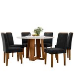 Conjunto Sala De Jantar Mesa Isabela 1,35m Com Tampo Giratório E 6 Cadeiras Amanda Ypê/off White/ja03 - New CevalConjunto Sala de Jantar Mesa Isabela 1,35m com Tampo Giratório e 6 Cadeiras Amanda Ypê/Off White/Ja03 - New CevalSe você está em busca de mobília que combine elegância, sofisticação e funcionalidade, temos a solução perfeita para você: a Mesa Isabela com tampo giratório, acompanhada de 6 deslumbrantes Cadeiras Amanda.A mesa Isabela com seu tampo giratório, ela oferece praticidade e versatilidade, permitindo que as refeições se tornem momentos mais agradáveis e interativos.Já as cadeiras Amanda foram cuidadosamente projetadas para complementar a Mesa Isabela, trazendo não apenas conforto, mas também um estilo inconfundível. Seu design elegante e sofisticado se encaixa perfeitamente em qualquer ambiente, seja em uma sala de jantar moderna ou em um espaço mais clássico.Dimensões da Mesa montada:Altura: 80cmLargura: 135cmProfundidade: 135cmPeso: 46,60KgEspecificações técnicas da Mesa:Mesa com estrutura em MDF + Vidro 3mmCor do Produto: Ypê/Off WhiteEstrutura da Base: MDFEstrutura do Tampo: MDF 18mm + Vidro 3mmFormato do Tampo: RedondoEspessura do Tampo: 21mmTipo de Vidro: NormalPossui Vidro: SimPés: MDF 25mmQuantidade de Lugares: 6 lugaresPeso (sem embalagem): 46,60kgPeso suportado: Até 40 kgDimensões da Cadeira montada:Altura: 99cmLargura: 45cmProfundidade: 59cmPeso: 7,90KgEspecificações técnicas da Cadeira:Cadeira com estrutura Mdf com assento e encosto estofados.Cor do Produto: Ypê/Ja03Revestimento/Tecido: Ja03 Veludo Preto (100% Poliéster / Gramatura 210 g/m²)Estrutura dos Pés: MdfEspessura dos Pés: 25mmCadeira estofada: SimPossui bordado: SimEstrutura do Assento: Madeira c/ Espuma D-18/TecidoEnchimento do Assento: Espuma D-18Estrutura do Encosto: MDF com Espuma D-18/TecidoEnchimento do Encosto: Espuma D-18Peso (Sem embalagem): 7,90KgPeso suportado: Até 120 kgItens inclusos:1 Mesa (Tampo + Base/Pés), 6 Cadeiras, kit ferragem e Manual para Montagem.Montagem/Instalação:Necessita Montagem: SimComplexidade da Montagem: Média - É recomendado que seja feita por alguém com experiência em montagem de móveis.Recomendação de Manutenção e Limpeza:Para maior durabilidade do produto, recomendamos mantê-lo longe de umidade e poeira e da exposição direta a luz solar.A limpeza deve ser feita usando um pano macio e semi-úmido, sem o uso de produtos químicos como Álcool ou Lustra Móveis.Ao precisar movimentar o móvel, evite arrasta-lo ou levanta-lo sozinho, peça ajuda a outra pessoa para realizar a tarefa.Observações Importantes:Não nos responsabilizamos pela montagem ou desmontagem dos produtos, que deverá ser feita por um profissional qualificado. Estes serviços NÃO estão inclusos nos valores das mercadorias.No ato da compra, certifique-se de que as medidas do produto estão adequadas aos elevadores, portas e corredores do local da entrega, visto que não fazemos a montagem ou desmontagem de portas ou janelas, transporte pela escada ou içamento pelo lado de fora do prédio.Ao receber a mercadoria, o cliente deve verificar as condições da embalagem, caso haja alguma avaria NÃO assine o comprovante de recebimento.Em casos de edifícios ou condomínios, o produto será entregue pela transportadora nas respectivas portarias (porteiros) que deverão ser comunicadas da entrega pelo comprador.As imagens são meramente ilustrativas, não acompanham objetos de decoração ou quaisquer outros itens que não façam parte do produto anunciado.Pode haver alguma diferença de tonalidade entre as imagens do anúncio e o produto real, por conta do tratamento das imagens, calibração de cores do seu monitor ou celular, e até mesmo pela sua percepção visual.- As imagens são meramente ilustrativas, não acompanham objetos de decoração ou quaisquer outros itens que não façam parte do produto anunciado.- Para quaisquer outras dúvidas entre em contato conosco nos nossos canais de atendimento.