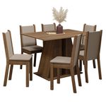 Conjunto Sala De Jantar Mesa Tampo De Madeira 6 Cadeiras Rustic/bege Wendy Madesa Rustic/sintético BegeO Conjunto de Jantar Wendy, da Madesa, chegou para transformar sua sala de jantar ou cozinha em um ambiente mais convidativo e aconchegante.A mesa possui tampo retangular em MDP, com tamanho ideal para acomodar até seis pessoas com conforto. A base no formato pedestal é um detalhe moderno que deixa o conjunto ainda mais bonito.As cadeiras são produzidas em MDF e MDP, com assento estofado em material Sintético Bege, que é fácil de limpar e combina com diversos estilos de decoração.O acabamento do móvel é em amadeirado Rustic, feito em Pintura Poliéster com 7 camadas que protegem o móvel dos efeitos do álcool da água e do calor.Medidas da cadeira:- 89 cm de altura- 37 cm de largura- 44 cm de profundidadeMedidas da mesa:- 78 cm de altura- 120 cm de largura- 90 cm de profundidadeItens inclusos:- Uma (1) Mesa com base pedestal e tampo de MDP- Seis (6) Cadeiras com assento estofadoCódigo do produto: MDJA0601577GBEObs.:- A Madesa não disponibiliza de montagem- Imagens meramente ilustrativas. O conjunto é composto pela mesa e seis cadeiras.- O produto segue com manual e todas as ferragens necessárias para a instalação1 – O produto vem montado? Se não, vocês realizam a montagem?R.: A Madesa não disponibiliza de montagem. Todos os produtos seguem com manual de instalação e as ferragens necessárias. Alguns produtos possuem vídeo explicando o passo a passo da montagem.2 – Vocês possuem física? Posso retirar meu produto em mãos?R.: Não possuímos física, apenas virtual. Confira as opções de ao colocar o seu CEP.3 – Qual é o valor do ? Posso pagar separadamente?R.: O valor do é calculado com base no peso e volume do produto, e no CEP de destino. Você pode calcular o valor e prazo de no simulador.4 – A Madesa em ? Como é feita a ?R.: Sim, entregamos no inteiro através de transportadoras parceiras.A Madesa se dedica à sustentabilidade com várias iniciativas: temos uma usina própria para gerar energia que abastece uma de nossas fábricas. Selecionamos nossos fornecedores, priorizando aqueles que possuem um compromisso com a sustentabilidade e proteção do meio ambiente. Todo o plástico utilizado no setor produtivo é proveniente de reciclagem e as suas sobras são encaminhadas ao fornecedor que os recicla. Também investimos no desenvolvimento contínuo de nossos colaboradores e em ações educacionais que beneficiem a comunidade.Cor: Marrom | Garantia: 3 meses contra de fabricação | Dimensões - Altura: 78 cm | Dimensões - Largura: 120 cm | Dimensões - Profundidade: 90 cm | Peso aproximado: 58,7 kg | Quantidade de Lugares: 6 | Produto: Conjunto Sala de Jantar | Marca: Madesa | RBN: Casa/Móveis/Móveis para Sala de Jantar/Conjuntos para Sala de Jantar | Material: MDP/MDF | Material para Filtro: MDP/MDF | Estado de Origem: RS | Conteúdo da embalagem: 1 Conjunto de Jantar | Instruções/Cuidados: Utilize um pano limpo, levemente umedecido e seque em seguida a superfície. Não usar produtos químicos ou abrasivos para a limpeza. Recomendamos polir seu móvel com lustra-móveis duas a três vezes por ano. | Nome do Simples no Fornecedor: Conjunto Sala de Jantar Mesa Tampo de Madeira 6 Cadeiras Rustic/Bege Wendy Madesa | Produto precisa de Montagem?: Sim, sugerimos a contratação do nosso de montagem (para os CEPs em que o está disponível) ou de algum experiente de sua preferência | Descrição do Tamanho: 78 cm x 120 cm x 90 cm | Comprimento Produto Com Embalagem (cm): | Largura Produto Com Embalagem (cm): | Altura do Produto com Embalagem (cm): | Peso Produto Com Embalagem (Kg): | Fabricante: Madesa | Formato da Mesa: Retangular | Inclui manual de montagem: Sim | Cor: Rustic/Sintético Bege