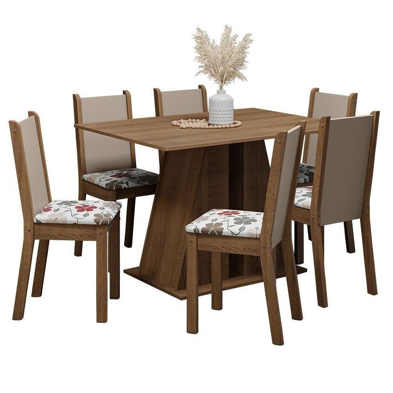 Conjunto Sala De Jantar Mesa Tampo De Madeira 6 Cadeiras Rustic/hibiscos Wendy Madesa O Conjunto de Jantar Wendy, da Madesa, chegou para transformar sua sala de jantar ou cozinha em um ambiente mais convidativo e aconchegante.A mesa possui tampo retangular em MDP, com tamanho ideal para acomodar até seis pessoas com conforto. A base no formato pedestal é um detalhe moderno que deixa o conjunto ainda mais bonito.As cadeiras são produzidas em MDF e MDP, com assento estofado em tecido floral Hibiscos, que combina com os mais variados estilos de decoração.O acabamento do móvel é em amadeirado Rustic, feito em Pintura Poliéster com 7 camadas que protegem o móvel dos efeitos do álcool da água e do calor.Medidas da cadeira:- 89 cm de altura- 37 cm de largura- 44 cm de profundidadeMedidas da mesa:- 78 cm de altura- 120 cm de largura- 90 cm de profundidadeItens inclusos:- Uma (1) Mesa com base pedestal e tampo de MDP- Seis (6) Cadeiras com assento estofadoCódigo do produto: MDJA0601577GFLHObs.:- A Madesa não disponibiliza de montagem- Imagens meramente ilustrativas. O conjunto é composto pela mesa e seis cadeiras.- O produto segue com manual e todas as ferragens necessárias para a instalação1 – O produto vem montado? Se não, vocês realizam a montagem?R.: A Madesa não disponibiliza de montagem. Todos os produtos seguem com manual de instalação e as ferragens necessárias. Alguns produtos possuem vídeo explicando o passo a passo da montagem.2 – Vocês possuem física? Posso retirar meu produto em mãos?R.: Não possuímos física, apenas virtual. Confira as opções de ao colocar o seu CEP.3 – Qual é o valor do ? Posso pagar separadamente?R.: O valor do é calculado com base no peso e volume do produto, e no CEP de destino. Você pode calcular o valor e prazo de no simulador.4 – A Madesa em ? Como é feita a ?R.: Sim, entregamos no inteiro através de transportadoras parceiras.A Madesa se dedica à sustentabilidade com várias iniciativas: temos uma usina própria para gerar energia que abastece uma de nossas fábricas. Selecionamos nossos fornecedores, priorizando aqueles que possuem um compromisso com a sustentabilidade e proteção do meio ambiente. Todo o plástico utilizado no setor produtivo é proveniente de reciclagem e as suas sobras são encaminhadas ao fornecedor que os recicla. Também investimos no desenvolvimento contínuo de nossos colaboradores e em ações educacionais que beneficiem a comunidade.Cor: Marrom | Garantia: 3 meses contra de fabricação | Dimensões - Altura: 78 cm | Dimensões - Largura: 120 cm | Dimensões - Profundidade: 90 cm | Peso aproximado: 58,7 kg | Quantidade de Lugares: 6 | Produto: Conjunto Sala de Jantar | Marca: Madesa | RBN: Casa/Móveis/Móveis para Sala de Jantar/Conjuntos para Sala de Jantar | Material: MDP/MDF | Material para Filtro: MDP/MDF | Estado de Origem: RS | Conteúdo da embalagem: 1 Conjunto de Jantar | Instruções/Cuidados: Utilize um pano limpo, levemente umedecido e seque em seguida a superfície. Não usar produtos químicos ou abrasivos para a limpeza. Recomendamos polir seu móvel com lustra-móveis duas a três vezes por ano. | Nome do Simples no Fornecedor: Conjunto Sala de Jantar Mesa Tampo de Madeira 6 Cadeiras Rustic/Hibiscos Wendy Madesa | Produto precisa de Montagem?: Sim, sugerimos a contratação do nosso de montagem (para os CEPs em que o está disponível) ou de algum experiente de sua preferência | Descrição do Tamanho: 78 cm x 120 cm x 90 cm | Comprimento Produto Com Embalagem (cm): | Largura Produto Com Embalagem (cm): | Altura do Produto com Embalagem (cm): | Peso Produto Com Embalagem (Kg): | Fabricante: Madesa | do Fabricante: | Formato da Mesa: Retangular | Inclui manual de montagem: Sim | Cor: Rustic/Hibiscos