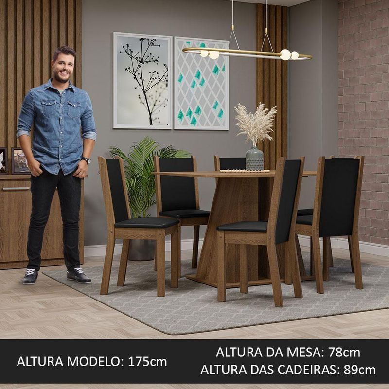 Conjunto Sala De Jantar Mesa Tampo De Madeira 6 Cadeiras Rustic/preto Wendy Madesa Rustic/sintético PretoO Conjunto de Jantar Wendy, da Madesa, chegou para transformar sua sala de jantar ou cozinha em um ambiente mais convidativo e aconchegante.A mesa possui tampo retangular em MDP, com tamanho ideal para acomodar até seis pessoas com conforto. A base no formato pedestal é um detalhe moderno que deixa o conjunto ainda mais bonito.As cadeiras são produzidas em MDF e MDP, com assento estofado em material Sintético Preto, que é fácil de limpar e combina com diversos estilos de decoração.O acabamento dos móveis combina os tons amadeirado Rustic e preto. Feito em Pintura Poliéster ecológica , com sete camadas de proteção e durabilidade.Medidas da cadeira:- 89 cm de altura- 37 cm de largura- 44 cm de profundidadeMedidas da mesa:- 78 cm de altura- 120 cm de largura- 90 cm de profundidadeItens inclusos:- Uma (1) Mesa com base pedestal e tampo de MDP- Seis (6) Cadeiras com assento estofadoCódigo do produto: MDJA0601577KPTObs.:- A Madesa não disponibiliza de montagem- Imagens meramente ilustrativas. O conjunto é composto pela mesa e seis cadeiras.- O produto segue com manual e todas as ferragens necessárias para a instalação1 – O produto vem montado? Se não, vocês realizam a montagem?R.: A Madesa não disponibiliza de montagem. Todos os produtos seguem com manual de instalação e as ferragens necessárias. Alguns produtos possuem vídeo explicando o passo a passo da montagem.2 – Vocês possuem física? Posso retirar meu produto em mãos?R.: Não possuímos física, apenas virtual. Confira as opções de ao colocar o seu CEP.3 – Qual é o valor do ? Posso pagar separadamente?R.: O valor do é calculado com base no peso e volume do produto, e no CEP de destino. Você pode calcular o valor e prazo de no simulador.4 – A Madesa em ? Como é feita a ?R.: Sim, entregamos no inteiro através de transportadoras parceiras.A Madesa se dedica à sustentabilidade com várias iniciativas: temos uma usina própria para gerar energia que abastece uma de nossas fábricas. Selecionamos nossos fornecedores, priorizando aqueles que possuem um compromisso com a sustentabilidade e proteção do meio ambiente. Todo o plástico utilizado no setor produtivo é proveniente de reciclagem e as suas sobras são encaminhadas ao fornecedor que os recicla. Também investimos no desenvolvimento contínuo de nossos colaboradores e em ações educacionais que beneficiem a comunidade.Cor: Marrom | Garantia: 3 meses contra de fabricação | Dimensões - Altura: 78 cm | Dimensões - Largura: 120 cm | Dimensões - Profundidade: 90 cm | Peso aproximado: 58,7 kg | Quantidade de Lugares: 6 | Produto: Conjunto Sala de Jantar | Marca: Madesa | RBN: Casa/Móveis/Móveis para Sala de Jantar/Conjuntos para Sala de Jantar | Material: MDP/MDF | Material para Filtro: MDP/MDF | Estado de Origem: RS | Conteúdo da embalagem: 1 Conjunto de Jantar | Instruções/Cuidados: Utilize um pano limpo, levemente umedecido e seque em seguida a superfície. Não usar produtos químicos ou abrasivos para a limpeza. Recomendamos polir seu móvel com lustra-móveis duas a três vezes por ano. | Nome do Simples no Fornecedor: Conjunto Sala de Jantar Mesa Tampo de Madeira 6 Cadeiras Rustic/Preto Wendy Madesa | Produto precisa de Montagem?: Sim, sugerimos a contratação do nosso de montagem (para os CEPs em que o está disponível) ou de algum experiente de sua preferência | Descrição do Tamanho: 78 cm x 120 cm x 90 cm | Comprimento Produto Com Embalagem (cm): | Largura Produto Com Embalagem (cm): | Altura do Produto com Embalagem (cm): | Peso Produto Com Embalagem (Kg): | Fabricante: Madesa | Formato da Mesa: Retangular | Inclui manual de montagem: Sim | Cor: Rustic/Sintético Preto