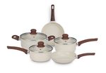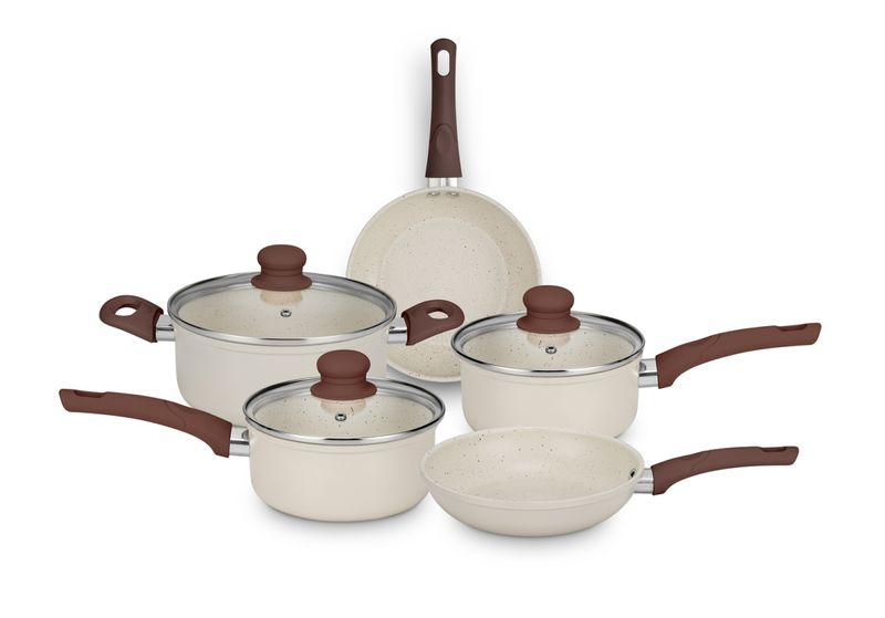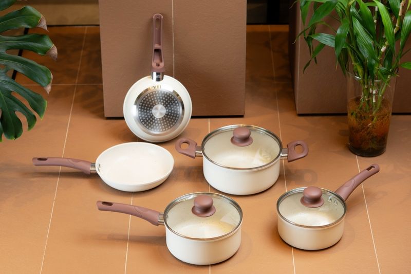CONJUNTO SERENA BAUNILHA MTA 8566 COM 5 PEÇAS — cerâmica premium, estética em tom baunilha e performance gourmet para cozinhar melhor e servir com mais elegância. Se você valoriza sabor, textura e apresentação, este conjunto foi feito para elevar sua rotina à experiência de um ateliê culinário: aquecimento rápido e uniforme, liberação fácil dos alimentos e controle total do preparo — do fogão à mesa. Com design sereno e acabamento em baunilha sofisticado, o Serena Baunilha harmoniza beleza e técnica. As tampas de vidro temperado permitem acompanhar o ponto sem perder calor, enquanto o revestimento cerâmico entrega uma superfície naturalmente lisa, que preserva cor, suculência e crocância. A estrutura em alumínio distribui o calor de forma eficiente, agiliza o preparo e favorece menor consumo de energia. Versátil, o conjunto é compatível com fogões de indução e outras fontes de calor, garantindo resultados consistentes em qualquer cozinha. Pensado para quem cozinha com consciência, o conjunto é livre de PFOA, Chumbo e Cádmio — mais saúde no prato, mais tranquilidade no dia a dia. O conforto vem dos cabos e alças com revestimento soft‑touch: pegada segura, toque macio e estabilidade ao manipular e servir. O resultado é uma experiência gourmet completa, que combina estética, técnica e prazer à mesa. Conteúdo da caixa (5 peças): Panela Nº 16 com tampa (32×17×9,5 cm); Panela Nº 18 com tampa (34×19×10,5 cm); Frigideira Nº 18 (34×19×6,3 cm); Frigideira Nº 20 (36×21×6,5 cm); Caçarola Nº 20 com tampa (34×21×11 cm). Na prática: use a Nº 16 para molhos e reduções sedosas; a Nº 18 para risotos e grãos no ponto; a frigideira 18 para selar cortes delicados e saltear legumes; a frigideira 20 para dourar porções maiores com distribuição uniforme; e a caçarola 20 para cozimentos lentos, caldos aromáticos e ensopados reconfortantes. Diferenciais que impactam o resultado no prato: revestimento cerâmico que facilita a liberação e a limpeza; alumínio que acelera e homogeneíza o aquecimento; tampas de vidro que oferecem controle visual; compatibilidade com indução para máxima eficiência; preparo rápido e uniforme com economia de energia; materiais seguros e livres de substâncias nocivas; cabos soft‑touch para conforto e segurança em todas as etapas. Dica de cuidado para preservar o brilho e a longevidade do conjunto: prefira a limpeza manual e utensílios não abrasivos (produto não vai à lava‑louças). Pronto para cozinhar em outro nível? Garanta agora o CONJUNTO SERENA BAUNILHA MTA 8566 COM 5 PEÇAS e eleve sua arte culinária — transforme cada refeição em um momento inesquecível, com sofisticação à vista e performance que você sente no primeiro garfo. Compre hoje e dê à sua cozinha a assinatura gourmet que ela merece.