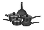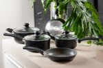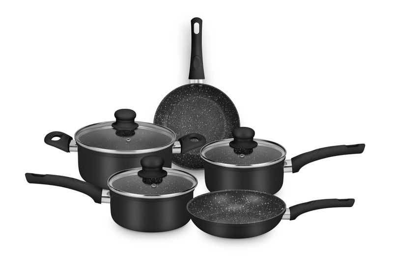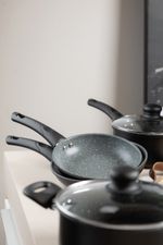 CONJUNTO SERENA PRETO MTA 8567 COM 5 PEÇAS — cerâmica premium, estética preta elegante e performance gourmet para cozinhar melhor e servir com mais sofisticação. Se você valoriza sabor, textura e apresentação, este conjunto eleva sua rotina à experiência de um ateliê culinário: aquecimento rápido e uniforme, liberação fácil dos alimentos e controle total do preparo — do fogão à mesa. Com design sereno e acabamento em preto profundo, o Serena Preto harmoniza beleza e técnica. As tampas de vidro temperado permitem acompanhar o ponto sem perder calor, enquanto o revestimento cerâmico oferece superfície naturalmente lisa, preservando cor, suculência e crocância dos ingredientes. A estrutura em alumínio distribui o calor de forma eficiente, acelera o preparo e favorece menor consumo de energia. Versátil, o conjunto é compatível com fogões de indução e outras fontes de calor, garantindo resultados consistentes em qualquer cozinha. Para uma experiência gourmet consciente, o conjunto é livre de PFOA, Chumbo e Cádmio — mais saúde no prato e tranquilidade no dia a dia. O conforto vem dos cabos e alças com revestimento soft‑touch: pegada segura, toque macio e estabilidade ao manipular e servir. O resultado é um equilíbrio impecável entre estética, técnica e prazer à mesa. Conteúdo da caixa (5 peças): Panela Nº 16 com tampa (32×17×9,5 cm); Panela Nº 18 com tampa (34×19×10,5 cm); Frigideira Nº 18 (34×19×6,3 cm); Frigideira Nº 20 (36×21×6,5 cm); Caçarola Nº 20 com tampa (34×21×11 cm). Na prática: use a Nº 16 para molhos e reduções sedosas; a Nº 18 para risotos e grãos no ponto; a frigideira 18 para selar cortes delicados e saltear legumes; a frigideira 20 para dourar porções maiores com distribuição uniforme; e a caçarola 20 para cozimentos lentos, caldos aromáticos e ensopados reconfortantes. Diferenciais que se traduzem em resultado no prato: revestimento cerâmico que facilita a liberação e a limpeza; alumínio que acelera e homogeneíza o aquecimento; tampas de vidro que oferecem controle visual; compatibilidade com indução para máxima eficiência; preparo rápido e uniforme com economia de energia; materiais seguros, livres de substâncias nocivas; cabos soft‑touch para conforto e segurança em todas as etapas. Dica de cuidado para preservar o brilho e a longevidade do acabamento: prefira a limpeza manual e utensílios não abrasivos (produto não vai à lava‑louças). Pronto para cozinhar em outro nível? Garanta agora o CONJUNTO SERENA PRETO MTA 8567 COM 5 PEÇAS e eleve sua arte culinária — transforme cada refeição em um momento inesquecível, com elegância à vista e performance que você sente no primeiro garfo. Compre hoje e dê à sua cozinha a assinatura gourmet que ela merece.