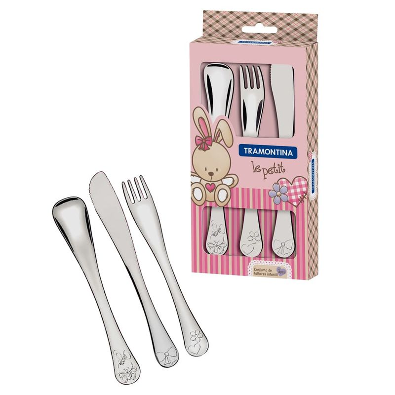Conjunto Talheres Infantil Tramontina Le Petit Menina Inox - 3 Peças