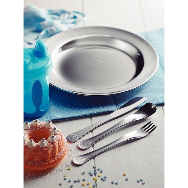 A Tramontina desenvolveu a linha Le Petit para meninos, este lindo conjunto de talheres composto por colher, faca e garfo feitos em aço inox de alta durabilidade e de fácil limpeza. É perfeito para incentivar o seu filho a se alimentar sozinho.