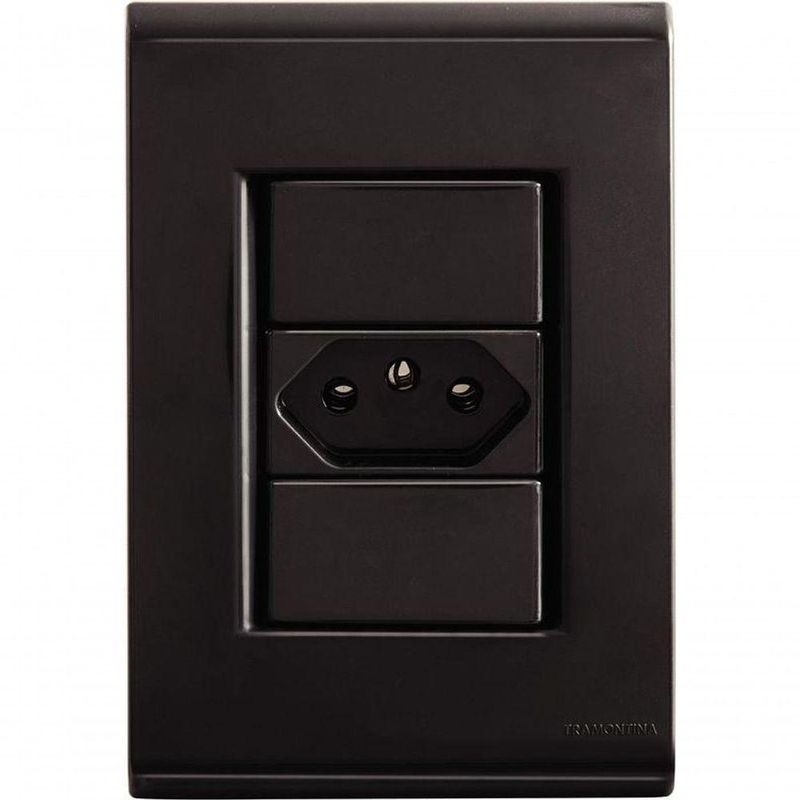 Conjunto Tramontina 4x2 Com 1 Tomada 2p+t 20 A 250 V Liz Grafite Quem valoriza cada detalhe na composição dos ambientes vai se surpreender com o conjunto 4x2 com 1 tomada 2P+T 20 A 250 V Tramontina Liz grafite. Produzido em termoplástico com acabamento brilho, seu material não retém poeira e mantém o visual sempre limpo. O sistema modular com ajuste gradual entre a placa e o suporte garante encaixe preciso e alinhamento perfeito com a parede, sem elementos aparentes. Conta ainda com furo oblongo, que facilita a fixação e o nivelamento, além de furos específicos para instalação em superfícies de madeira. Uma solução discreta, eficiente e pensada para quem não abre mão de qualidade.Recomendações de Uso:Modo de uso: ;É importante que o produto seja instalado por habilitado. Antes de instalar, desligue a energia elétrica.- Foto meramente ilustrativa.Informações Adicionais:- Fabricação em termoplástico com acabamento brilho;- Com furo oblongo para facilitar a fixação e a regulagem da placa à parede e furos específicos para a fixação em parede de madeira;- Sistema modular, possui ajuste gradual entre a placa e o suporte, proporcionando um acabamento perfeito da placa com a parede, sem ficar aparente.