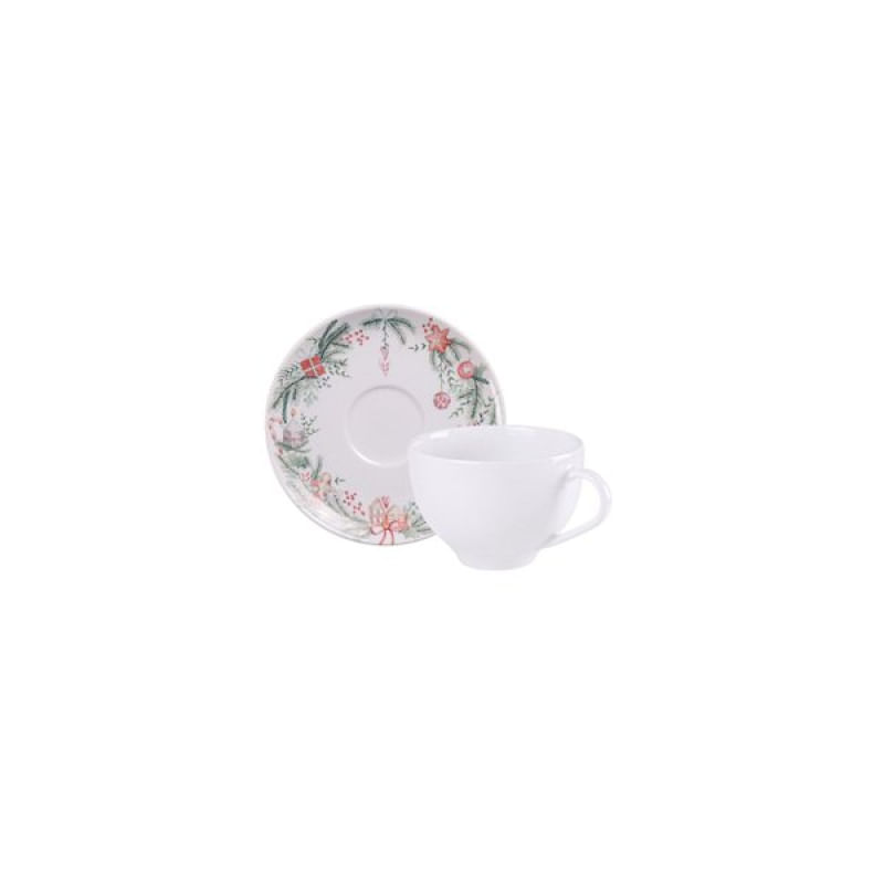 Conjunto Xícara e Pires de Chá Tramontina Casa Natal Noite Feliz em Porcelana Decorada 250ml Tramontina - Aproveite seus momentos de pausa com estilo do conjunto de xícara e pires Tramontina Noite Feliz em porcelana 2 peças. Feito em porcelana de alta qualidade, o conjunto é resistente ao microondas e à lava-louças, oferecendo praticidade no dia a dia. Sua baixa porosidade impede o acúmulo de fungos e bactérias, garantindo mais segurança ao servir seu chá ou café. Com um design sofisticado e moderno, a coleção Noite Feliz adiciona charme quando utilizado, seja sozinho ou compartilhado com quem você gosta. Características Gerais do Produto: Garantia: • 3 Meses