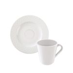 Conjunto Xícara Pires Café Tramontina Ingrid Porcelana Tramontina - Conjunto XÃcara e Pires de Café Tramontina Ingrid em Porcelana Com o conjunto xÃcara e pires de café Tramontina Ingrid em porcelana, tomar aquele cafezinho após o almoço fica muito mais especial. Composto por duas peças desenvolvidas em porcelana tradicional com tecnologia exclusiva da Tramontina, ele possui excelente brancura e brilho, garante alta resistência mecânica, porosidade próxima de zero e é translúcido. Sua decoração é delicada e tem desenhos inspirados em rendas costuradas a mão e detalhes delicados em tecidos, homenageando todas as mulheres estilistas e profissionais da moda! Fabricado em Porcelana Tradicional Coleção: GabrielleVolume: 70 ml (xÃcara) Cuidados com o produto Ao usar o produto pela primeira vez, lavar bem a peça com esponja macia e sabão neutro, Lavar as peças utilizando esponja macia e sabão neutro, Não levar as peças ao forno, Não submeter as peças a chama direta, Uso de microondas (seguir a orientação conforme etiqueta do produto), Uso de máquina de lavar (seguir a orientação conforme etiqueta do produto). Garantia 90 dias de garantia legal para vÃcios ou defeitos de fabricação. Características Gerais do Produto: Garantia: • 90 dias para defeito de fabricação