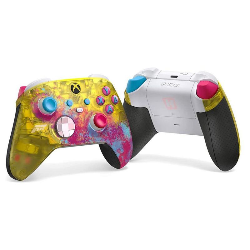CARACTERÍSTICAS - Pegue o Xbox Wireless Controller - Forza Horizon 5 Limited Edition para a derradeira aventura Horizon, com empunhaduras personalizadas inspiradas em corridas e um acabamento amarelo transparente inédito. Inclui conteúdo exclusivo: carro da edição Forza, item cosmético e emote de vitória (o conteúdo para download requer o jogo Forza Horizon 5, vendido separadamente); - Assuma o controle de todos os terrenos com a empunhadura do gatilho texturizada e padrões de empunhadura com rebaixo lateral e inferior personalizados inspirados nos volantes de carro de desempenho de estilo perfurado. Conecte qualquer fone de ouvido compatível com o conector de fone de ouvido estéreo de 3,5 mm; - Olhe sob o capô do acabamento amarelo transparente com um motor de ruído visível de cor personalizada e efeitos de luz que tocam no botão do Xbox. Sinta o espírito do festival Horizon com um D-pad híbrido de mudança de cor e thumbsticks assimétricos em diferentes cores ousadas; - Capture e compartilhe conteúdo perfeitamente com o botão Compartilhar. Personalize o mapeamento de botões com o aplicativo Acessórios Xbox; - Inclui a tecnologia Xbox Wireless e Bluetooth para jogos sem fio em consoles compatíveis, PCs com Windows 10 e telefones e tablets Android e iOS; ITENS INCLUSOS: 01- Controle Xbox Forza Horizon 5 Limited Ed. - Xbox Series X/S, One e PC 01- Manual