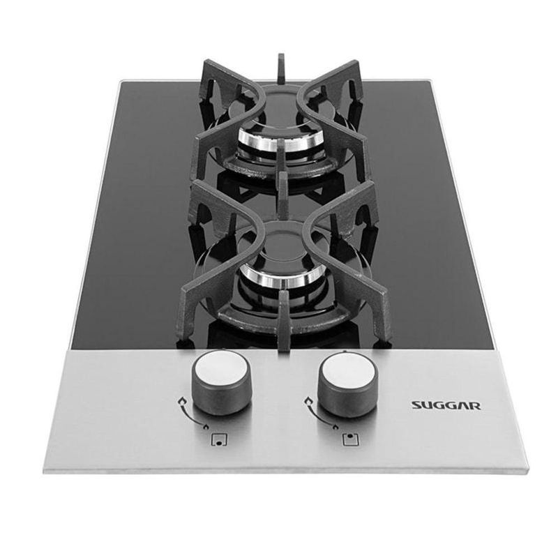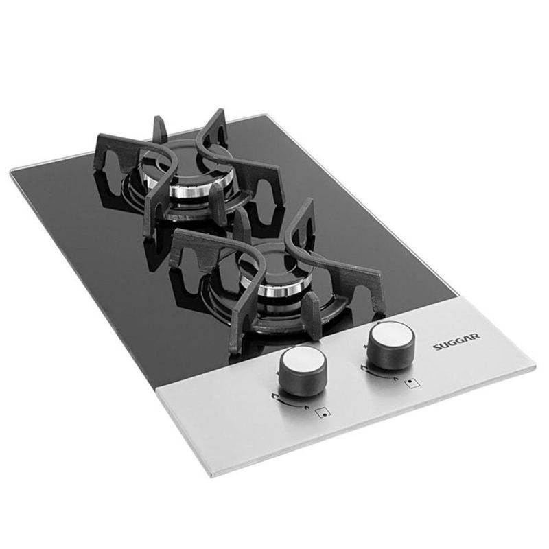 Cooktop 2 Bocas Suggar Ferro Fundido Preto Com Inox à Gás FG2002FVPIX Bivolt Cooktop Vidro 2 Queimadores com Frame Inox Suggar – Compacto, moderno e eficienteO Cooktop Vidro 2 Queimadores Suggar é a escolha ideal para quem busca praticidade e sofisticação em um produto compacto. Perfeito para preparos rápidos com até duas panelas – como sopas, massas e muito mais –, ele alia charme, funcionalidade e eficiência térmica para o seu dia a dia.Conta com mesa em vidro temperado, frame frontal e posterior em inox para maior resistência e durabilidade, além de acendimento superautomático que facilita o preparo das refeições. Os botões multicontrol removíveis tornam a limpeza mais prática, e os trempes de ferro fundido oferecem robustez e estabilidade às panelas.Vantagens do Produto- Acendimento superautomático – maior praticidade no preparo das refeições- Trempes de ferro fundido – modernas, robustas e duráveis- Mesa em vidro temperado, com frame frontal e posterior em inox – qualidade e alta resistência- Botões multicontrol removíveis – facilitam ainda mais a limpeza no dia a dia- 2 queimadores a gás- Queimadores esmaltados de diferentes tamanhos- Potência térmica total: 4,45kWSobre o ProdutoO Cooktop Vidro 2 Queimadores Suggar é pequeno, elegante e cabe em qualquer cantinho da sua cozinha, sem ocupar espaço. É ideal para quem busca sofisticação e funcionalidade sob medida.Especificações TécnicasMarca: SuggarModelo: FG2002FVPIXVoltagem: BivoltCor: PretoQuantidade de queimadores: 2Tipo de montagem: EmbutirCódigo EAN: 7908312816445Qtd. por caixa: 1 unidadeAltura: 9,9 cmLargura: 30,2 cmProfundidade: 51,0 cmPeso: 5,2 kgGarantia: 12 meses