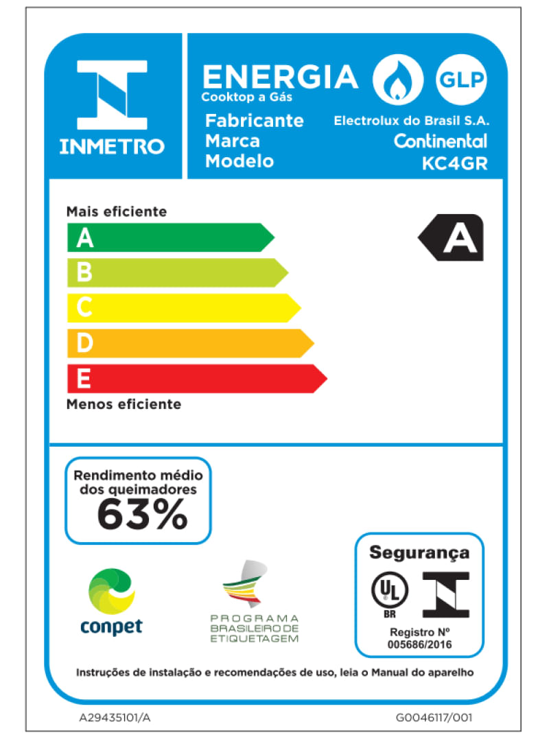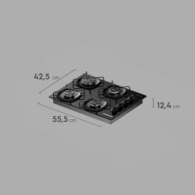 O Cooktop 4 Bocas a Gás Continental Mesa de Vidro Preto com Acendimento Automático (KC4GR) traz robustez e durabilidade para você.Experimente a qualidade Continental com o Cooktop 4 Bocas a Gás Continental Mesa de Vidro Preto com Acendimento Automático (KC4GR). Um produto durável e eficiente, feito para facilitar seu dia a dia.A mesa de vidro temperado é ideal para uma limpeza rápida e fácil após o uso, além de dar um toque de modernidade para a cozinha. Seus queimadores selados trazem maior estabilidade da chama e evitam que o fogo se apague.Diga adeus às panelas bambas: as grades e a superfície em formato quadrado proporcionam um apoio firme e seguro para as panelas e evitam que líquidos escorram por toda a superfície. A potência total dos queimadores é de 8.400 W, o que garante chamas que impressionam e um cozimento rápido e eficiente dos alimentos.É sua cozinha com o melhor da Continental: robustez, durabilidade e qualidade em cada detalhe. Tudo isso com um desempenho classe A no consumo de energia para você preparar suas refeições com mais economia.Sem fósforos, sem preocupações. Conte com a segurança do Acendimento Super Automático e ainda mais uma praticidade para sua rotina: os Botões removíveis, que são ideais para uma limpeza fácil e completa. Com esse e outros itens, você pode montar sua Cozinha Continental Completa e deixar sua casa mais bem equipada e bonita.É recomendado o uso de acessórios originais Electrolux.