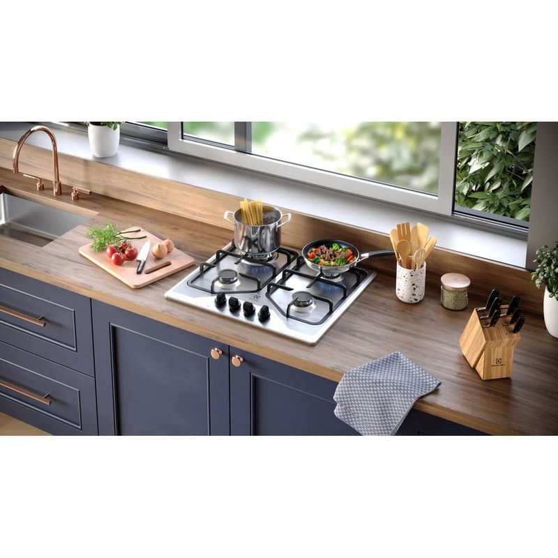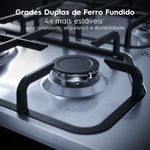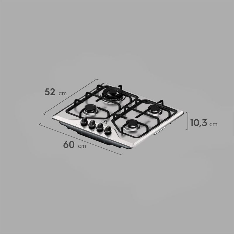 O Cooktop 4 Bocas a Gás Electrolux Inox Experience Multi Chama e Grade Ferro Fundido (KE4XC) traz inovação e tecnologia para ampliar sua experiência na cozinha. O potente queimador Multi Chama distribui o calor de maneira uniforme, o que ajuda você a ganhar tempo nos preparos com resultados incrivelmente saborosos. Cozinhe com até 20%1 mais eficiência e ferva a água até 22%2 mais rápido.As Grades Duplas de Ferro Fundido de 4 apoios proporcionam aderência perfeita ao fundo das panelas. São 4x mais estáveis3, assegurando alta qualidade, segurança e durabilidade no uso diário.Para que você possa explorar mais ao cozinhar, a Tecnologia ChamaPrecisa oferece 6 níveis pré-programados de potência4. Tenha mais precisão na temperatura durante o preparo de diferentes receitas e garanta sabor e textura ideais aos seus pratos. Confira os níveis: 1 - Derreter e Manter Aquecido; 2 - Preparos em panela de pressão e Banho-Maria; 3 - Preparar Molhos; 4 - Refogar; 5 - Grelhar e Fritar; e 6 - Ferver.Enquanto isso, os Queimadores Selados dão maior estabilidade à chama, evitando que o fogo se apague. Com o Cooktop 4 Bocas Electrolux Gás Experience, você tem precisão e elegância em um aliado poderoso: a potência total de 9.300 W dos queimadores garante um cozimento rápido e eficiente, que acelera o preparo das receitas. Materiais e acabamentos resistentes conferem alta durabilidade e robustez ao produto. Veja mais facilidades que deixam seus momentos na cozinha ainda melhores: com o Acendimento Automático Super Rápido, é possível ligar a chama com apenas um giro do botão. E os botões removíveis podem ser facilmente removidos para uma limpeza prática e completa.O cooktop com mesa de aço inoxidável reflete a atenção aos detalhes em todos os sentidos, combinando design moderno com alta performance. Tem desempenho classe A no consumo de energia (Inmetro) e é ideal para você preparar suas refeições com mais eficiência e economia.Amplie sua experiência com os acessórios e consumíveis da Electrolux e tenha uma cozinha mais completa, elegante e bem equipada.É recomendado o uso de acessórios originais Electrolux.