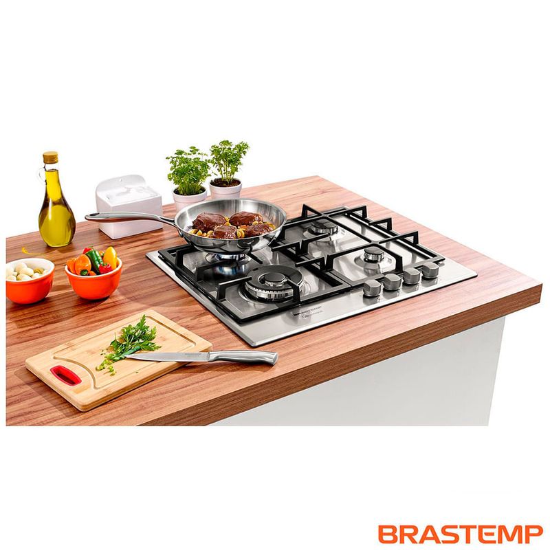 Cooktop à Gás de 4 Bocas Brastemp com Acendimento Superautomático Gourmand Inox - BDK60DRBNACooktop Inox 4 Bocas Brastemp Gourmand. Possui sistema de acendimento Superautomático e válvula de segurança, proporcionando praticidade e segurança para o seu dia-a-dia. Suas trempes de ferro fundido são robustas e resistentes. Possui um queimador mega chama que permite um cozimento uniforme e potente. A mesa selada e os botões removíveis facilitam a limpeza. Destaques A Brastemp desenvolveu a linha Gourmand para levar o melhor cooktop para sua cozinha.O novo Cooktop Gourmand em aço inox é perfeito para boas aventuras gastronômicas ao lado de sua família e amigos.São 4 bocas com acendedor superautomático, e diferentes tipos de queimadores. Outro destaque é a válvula de segurança que impede o vazamento de gás, caso alguma chama se apague.Cooktop Brastemp Gourmand. O melhor da Brastemp direto para sua cozinha.Mesa em inox com design exclusivo Queimador mega chama de alta potência e simmer para receitas mais delicadasAcendimento Superautomático: Basta girar o botão e o cooktop acende CaracterísticasTipo: A GásQuantidade de Bocas: 4 BocasTipo de Acendimento: Acendimento superautomáticoBotões Removíveis Especificações TécnicasModelo: BDK60DRBNAAcabamento: InoxVálvula de Segurança Selo Conpet (Eficiência Energética): ECor: InoxVoltagem: 220VEAN: 7891129233454Garantia: 12 meses Dimensões e PesoDimensões do produto sem embalagem (AxLxP): 380x590x510 mmDimensões do produto com embalagem (AxLxP): 165x645x595 mmDimensões do Nicho (AxLxP): 560x480x38 mmPeso do produto sem embalagem: 9,7 kgPeso do produto com embalagem: 10,5 kg Itens InclusosCooktop1 Manual Serviço de Instalação e Orientação de UsoPara sua comodidade, a Fast Shop dispõe do serviço de Instalação e Orientação de Uso*, com equipe especializada e autorizada pelo fabricante. Você pode contratar o serviço com o nosso canal Blá pelo WhatsApp no número (11) 3232-2949 ou em uma de nossas lojas. Consulte os valores e regiões atendidas.