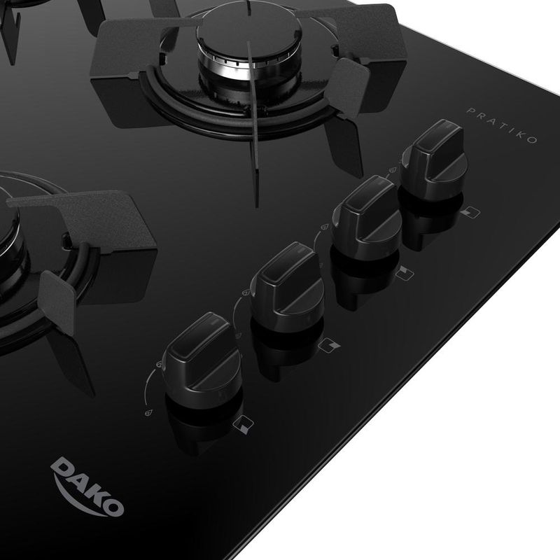 Se é bonito e feito pra durar, é Pratiko. O Cooktop Dako Pratiko 4 bocas foi criado pra quem quer mais: mais eficiência, mais estilo e mais tranquilidade na rotina, por um preço que cabe no bolso.Enquanto outros modelos ainda têm grades que escorregam, o Pratiko entrega segurança de verdade: grades individuais em aço fosco, com 6 pontos de apoio que mantêm as panelas firmes e você no controle.A limpeza? Sem mistério. Queimador com capa lisa, mesa de vidro e botões removíveis evitam o acúmulo de sujeira e tornam a manutenção do dia a dia muito mais prática. Ideal pra quem não tem tempo a perder e gosta de tudo sempre em ordem.Com acendimento superautomático, basta girar e pronto: chama acesa. Mais agilidade e eficiência na cozinha. O Pratiko mostra que funcionalidade e beleza podem e devem andar juntas.Pratiko no nome e na essência. A escolha certa pra quem transforma rotina em praticidade, sem abrir mão do bom gosto. Atributos e BenefíciosModerno e Funcional - Estilo e eficiência que facilitam seu dia a dia.Panelas seguras e Estáveis - Grades de aço com acabamento fosco e 6 apoios proporcionam mais aderência, evitam escorregões e garantem segurança durante o uso.Mega Chama - Mais agilidade, potência e precisão durante os preparos.Queimador com Tampa Lisa - Evita que o fogo se apague e facilita a remoção de sujeiras.Vidro temperado - Beleza, praticidade e limpeza fácil no ritmo da sua rotina. Ficha técnicaVoltagem: BivoltCor: PretoQuantidade de Bocas: 4 BocasTipo de Acendimento: SuperautomáticoGarantia: 12 MesesAcabamento da Mesa: Vidro TemperadoInstalação: CooktopDimensões do Produto (largura x altura x profundidade): 58x11x46 cmDimensões do Nicho (largura x altura x profundidade): 51×20×34,5 cmFuncionamento: GásTimer: Não PossuiBotões Removíveis: SimFabricação: NacionalPotência dos Queimadores: 3Q Semi-Rápido 1,65 kW, 1Q Mega Chama/Rápido 2,85 kWPadrão de Tomada: 10AComprimento do Cabo de Energia: 96 cmEAN: 7897180513023