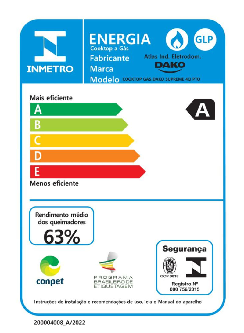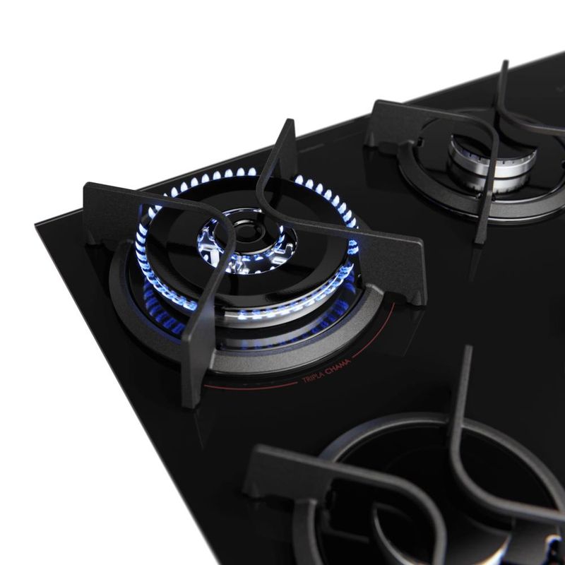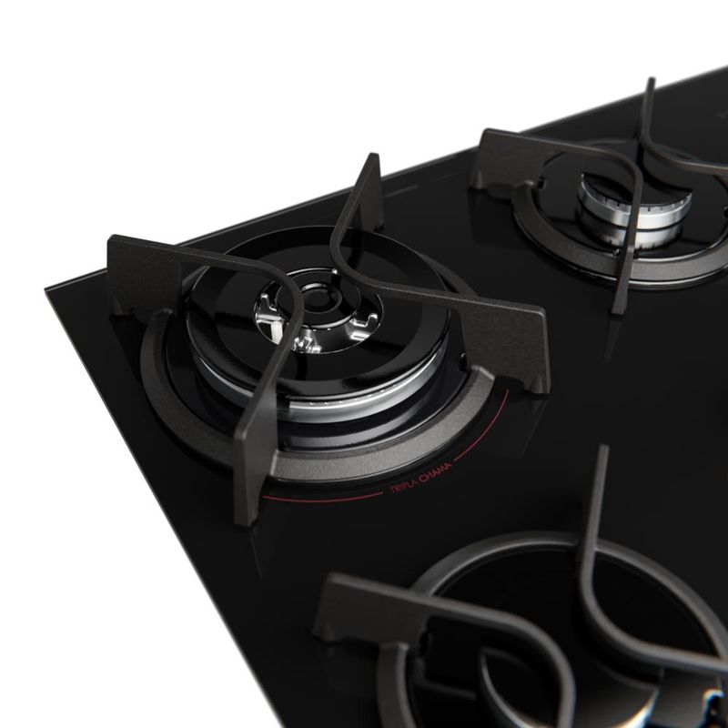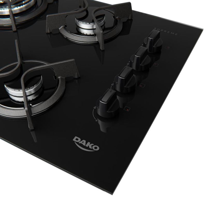 O Cooktop 4 Bocas Preto com Mesa de Vidro e Tripla Chama Dako Supreme Bivolt conta com 3 queimadores de 1,65 kW, 1 queimador Tripla Chama de 3,25 kW e medidas 58 x 12 x 46 cm (largura x altura x profundidade). Voltagem:BivoltCor: PretoLinha: SupremeQuantidade de Bocas: 4 bocasTipo de Acendimento: SuperautomáticoGarantia: 12 MesesAcabamento da Mesa: Vidro TemperadoFuncionamento: GásTrempes: Individual de ferro fundido com 4 pontos de apoioBotões Removíveis: SimDimensões do Produto (largura x altura x profundidade): 58 x 12 x 46 cmDimensões do Nicho (largura x altura x profundidade: 51 x 20 x 34,5 cmFabricação: NacionalPotência dos Queimadores: 3Q Ramal de 1,65 kW e 1Q Tripla Chama de 3,25 kWEficiência Energética: AEAN: 7897180509422 A Conversão de Gás é gratuita, se solicitada em até 90 dias após o recebimento do produtoNão realizamos serviço de Instalação. Consulte nosso SAC para indicações de assistência técnica credenciada na sua região Não faturamos para CNPJ neste canal, conclua sua compra através de um CPF.