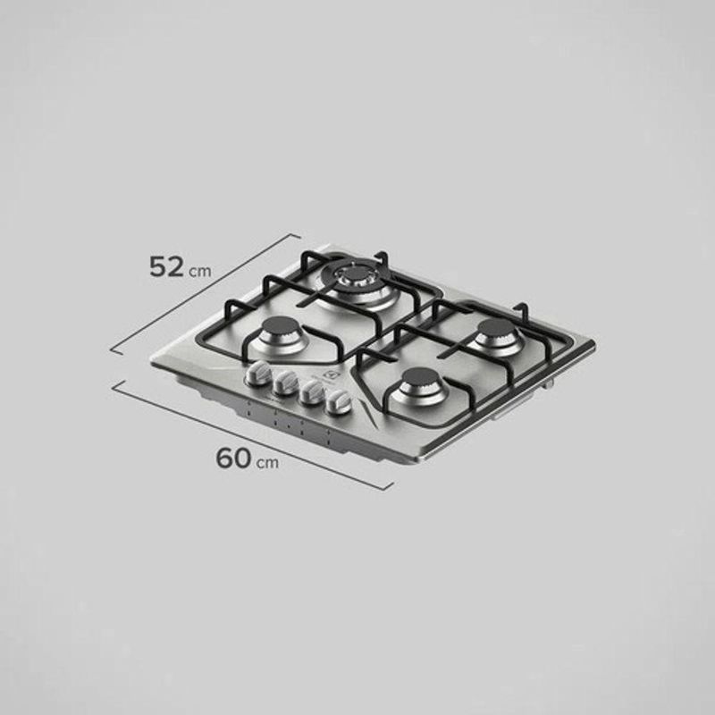 Cooktop 4 Bocas Electrolux A Gás Inox Com Tripla Chama GT60X BivoltCooktop 4 Bocas Inox Electrolux (GT60X)O Cooktop 4 Bocas Inox Electrolux (GT60X) combina um design robusto e resistente com recursos que tornam o preparo dos alimentos mais eficiente. Equipado com um queimador tripla chama, oferece rapidez no cozimento de diferentes receitas, enquanto sua mesa sem furação facilita a limpeza e evita o acúmulo de sujeira.Diferenciais do Cooktop 4 Bocas Inox Electrolux:Queimador Tripla Chama: Queimadores de tamanhos diferentes para promover flexibilidade, com chama potente que acelera o preparo das refeições.Versatilidade na Instalação: Funciona tanto com gás de botijão quanto com gás encanado.Acendimento Super Automático: Ignição rápida, fácil e segura.Painel Frontal Centralizado: Melhor visualização para manuseio do cooktop, garantindo segurança, ergonomia e praticidade.Mesa Sem Furação: Facilita a limpeza e impede o acúmulo de sujeira.Botões Removíveis: Além de bonitos, os botões não acumulam sujeira e podem ser limpos separadamente.Principais Dúvidas sobre o Cooktop 4 Bocas Inox:Qual o melhor cooktop 4 bocas inox?O Cooktop 4 Bocas Inox Electrolux está entre as melhores opções para sua casa. Ele conta com queimadores tripla chama, que oferecem maior rapidez no preparo dos alimentos, e soluções que facilitam a limpeza.O que é melhor: cooktop de vidro ou de inox?Ambos são ótimas opções para quem busca durabilidade, resistência e facilidade na limpeza. O cooktop de vidro oferece um design moderno, enquanto o de inox é ideal para quem prefere uma estética mais robusta e tradicional.O que olhar antes de comprar um cooktop?Ao escolher um cooktop, é importante avaliar o tipo de instalação (a gás ou indução), a quantidade de bocas, e os recursos e tecnologias do modelo, como queimadores tripla chama e acendimento super automático. Funcionalidades como botões removíveis e mesa sem furação também são importantes para facilitar a limpeza.Qual panela não pode usar no cooktop?Em geral, panelas com fundo arredondado, irregular ou muito pequeno não são recomendadas para cooktops, pois podem comprometer a estabilidade e a eficiência no preparo. No caso do Cooktop 4 Bocas Inox a gás da Electrolux, qualquer panela pode ser usada, desde que tenha fundo plano e tamanho adequado aos queimadores, garantindo segurança e eficácia.O que vai embaixo do cooktop?Abaixo do cooktop, podem ser instalados fornos embutidos ou armários, otimizando o espaço e promovendo um design moderno. Para o Cooktop 4 Bocas Inox da Electrolux, é essencial seguir as orientações do manual, especialmente sobre o distanciamento entre o cooktop e os móveis, para garantir segurança e eficiência no uso.Informações Técnicas:Produto Embalado:Altura: 5,8 cmLargura: 50,2 cmProfundidade: 52,2 cmPeso: 8,4 kgProduto Desembalado:Altura: 10,3 cmLargura: 60 cmProfundidade: 52 cmPeso: 7,9 kgNicho:Altura: 5,8 cmLargura: 54,5 cmProfundidade: 48 cmFrequência: 60HzAltura do Nicho: 15 cmGarantia do Produto: 1 anoEAN-13: 78965840 5771 3Largura do Nicho: 54,5 cmClassificação Energética: ATensão: BivoltProfundidade do Nicho: 48 cmAltura do Produto Embalado: 5,8 cmLargura do Produto Embalado: 50,2 cmProfundidade do Produto Embalado: 52,2 cmTipo de Gás: GLPPeso do Produto Embalado: 8,4 kgPotência dos Queimadores: 3.700 W