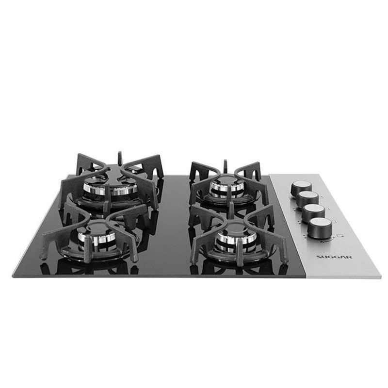 Cooktop 4 Bocas Ferro Fundido Preto Com Inox à Gás Suggar BivoltCooktop Suggar Vidro 4 Queimadores com Frame Inox – FG4404FVPIXDescrição do ProdutoO Cooktop Suggar 4 Queimadores combina design moderno, praticidade e alta performance para a sua cozinha.Sua mesa em vidro temperado com frame frontal e posterior em inox oferece resistência e sofisticação.O cooktop possui acendimento superautomático, garantindo rapidez e praticidade no preparo das refeições.Com queimadores esmaltados de diferentes tamanhos e trempes duplas em ferro fundido, proporciona estabilidade, segurança e eficiência ao cozinhar.Os botões multicontrol removíveis facilitam a limpeza, tornando o dia a dia ainda mais prático.Vantagens do ProdutoAcendimento superautomático: maior praticidade no preparoQueimador tripla chama: potência e rapidez no cozimentoTrempes de ferro fundido: modernas, robustas e duráveisMesa em vidro temperado com frame lateral em inox: resistência e sofisticaçãoBotões multicontrol removíveis: limpeza facilitada4 queimadores a gásQueimadores esmaltados de diferentes tamanhosPotência térmica total: 8,45 kWEspecificações TécnicasMarca: SuggarModelo: FG4404FVPIXCor: PretoTipo de Montagem: EmbutirQuantidade de Queimadores: 4Tipo de Combustível: GásAcendimento: SuperautomáticoTrempes: Ferro fundidoBotões: Multicontrol removíveisGarantia: 12 mesesVoltagem: BivoltEAN: 7908312816452Dimensões e PesoAltura: 9,9 cmLargura: 55,0 cmProfundidade: 46,0 cmPeso: 9,02 kg