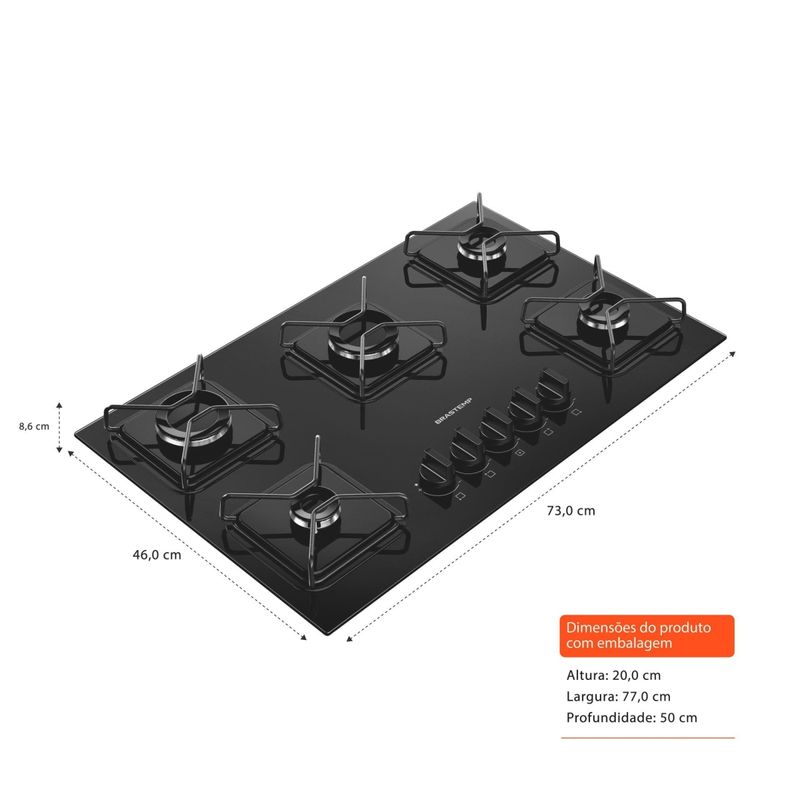 Cooktop 5 Bocas Brastemp BDD75BE: mais potência, precisão e eficiência na hora de cozinhar! O Cooktop 5 Bocas a Gás Brastemp BDD75BE apresenta design inovador e performance superior, unindo o exclusivo design Brastemp com grades quadradas e resistentes grades de ferro aramado, garantindo estabilidade adequadas para diversos tamanhos de panelas. Chama Simmer Com Chamas Especiais, o cooktop distribui o calor perfeito para qualquer tipo de receita, desde preparos mais potentes até o controle preciso da Chama Simmer para pratos delicados como caldas e molhos. Mesa de Vidro Seu design moderno conta com linhas retas, botões com detalhes polidos em preto e mesa de vidro temperado, que suporta impactos e altas temperaturas, além de facilitar a limpeza. Botões removíveis Os botões removíveis tornam a higienização mais simples, permitindo alcançar até as sujeiras mais difíceis sem esforço. Acendimento Superautomático O Acendimento Superautomático garante praticidade: basta girar o botão e a chama acende imediatamente, oferecendo rapidez no preparo das receitas do dia a dia. Grades quadradas em ferro aramado Chamas Especiais para diferentes receitas Chama Simmer para preparos delicados Mesa de vidro temperado resistente Botões removíveis de fácil limpeza Acendimento Superautomático Explore a linha completa de produtos Brastemp e deixe a sua casa ainda mais completa!