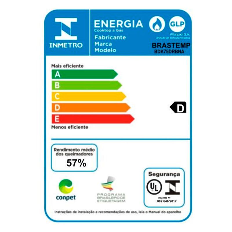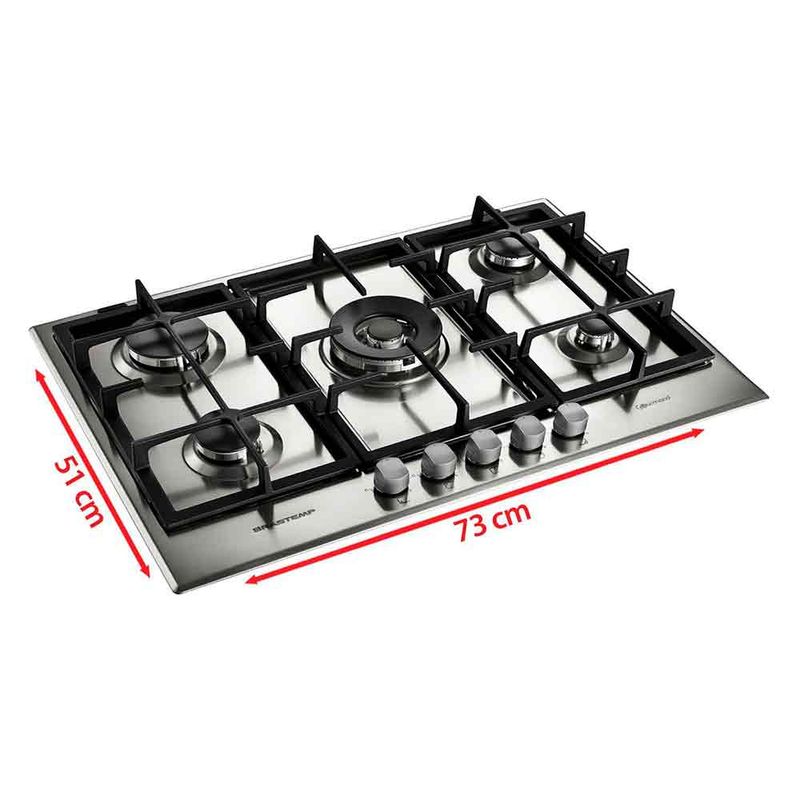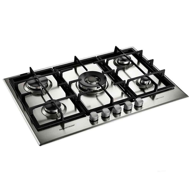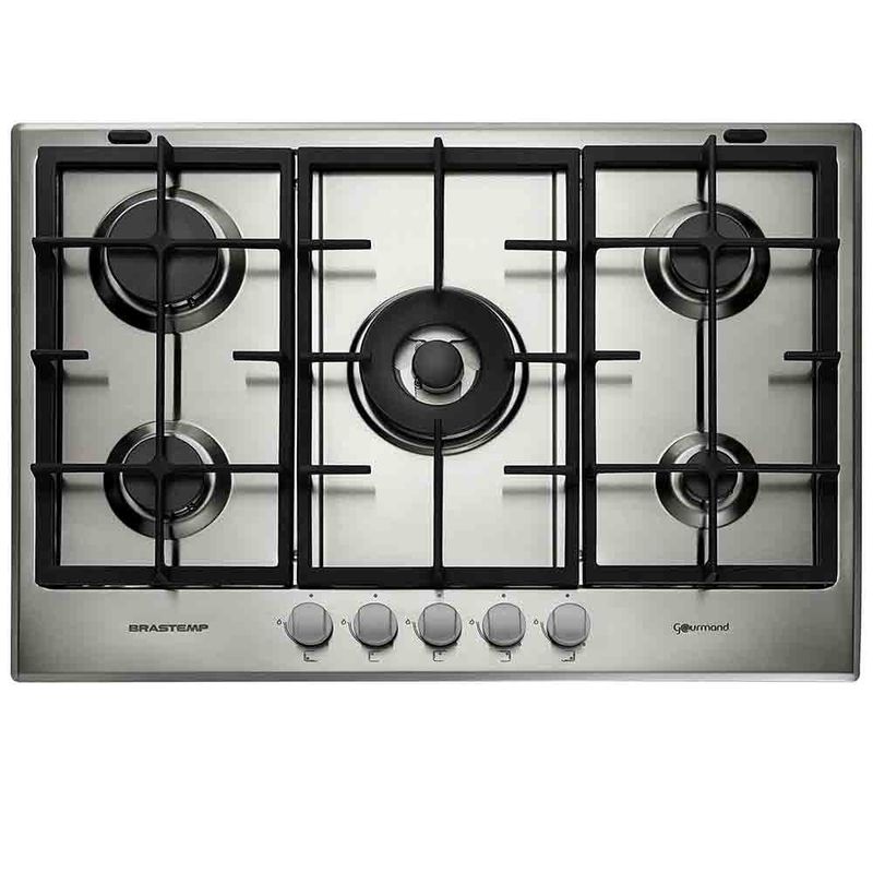 Cooktop à Gás de 5 Bocas Brastemp com Acendimento Superautomático Gourmand Inox - BDK75DRBNACooktop Inox 5 Bocas Brastemp Gourmand. Possui sistema de acendimento Superautomático e válvula de segurança, proporcionando praticidade e segurança para o seu dia-a-dia. Suas trempes de ferro fundido são robustas e resistentes. Possui um queimador megachama que permite um cozimento uniforme e potente. A mesa selada e os botões removíveis facilitam a limpeza. Destaques A Brastemp desenvolveu a linha Gourmand para levar o melhor cooktop para sua cozinha.O novo Cooktop Gourmand em aço inox é perfeito para boas aventuras gastronômicas ao lado de sua família e amigos.São 5 bocas com acendedor superautomático, e diferentes tipos de queimadores. Outro destaque é a válvula de segurança que impede o vazamento de gás, caso alguma chama se apague.Cooktop Brastemp Gourmand. O melhor da Brastemp direto para sua cozinha.Mesa em inox com design exclusivo.Queimador megachama de alta potência e simmer para receitas mais delicadas.Acendimento superautomático: Basta girar o botão e o cooktop acende. CaracterísticasTipo: A GásQuantidade de Bocas: 5 BocasTipo de Acendimento: Acendimento superautomáticoBotões Removíveis Especificações TécnicasModelo: BDK75DRBNAAcabamento: InoxVálvula de Segurança Selo Conpet (Eficiência Energética): ECor: InoxEAN: 7891129233508Voltagem: 220VGarantia: 12 meses Dimensões e PesoDimensões do produto sem embalagem (AxLxP): 380x730x510 mmDimensões do produto com embalagem (AxLxP): 165x800x595 mmDimensões do Nicho (AxLxP): 560x480x38 mmPeso do produto sem embalagem: 12,1 kgPeso do produto com embalagem: 13,2 kg Itens InclusosCooktop1 Manual Serviço de Instalação e Orientação de UsoPara sua comodidade, a Fast Shop dispõe do serviço de Instalação e Orientação de Uso*, com equipe especializada e autorizada pelo fabricante. Você pode contratar o serviço com o nosso canal Blá pelo WhatsApp no número (11) 3232-2949 ou em uma de nossas lojas. Consulte os valores e regiões atendidas.