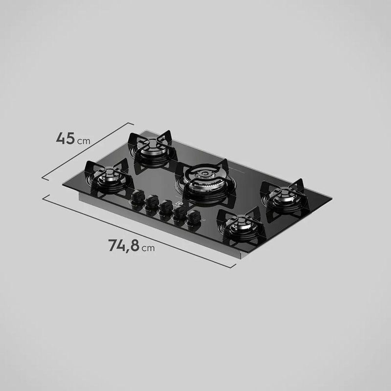 Cooktop 5 Bocas Electrolux A Gás Com Tripla Chama KE5TP BivoltCooktop 5 Bocas Tripla Chama Electrolux (KE5TP)O fogão cooktop 5 bocas tripla chama Electrolux (KE5TP) é perfeito para o preparo de suas refeições e deixa sua cozinha sofisticada de maneira eficiente, oferecendo em um de seus queimadores a Tripla Chama com potência máxima de 3,2KW, proporcionando mais rapidez no preparo de suas receitas. Seu tamanho compacto possui um design moderno e slim, se encaixando harmoniosamente na bancada de sua cozinha. Além disso, o cooktop 5 bocas tripla chama conta com mesa de vidro temperado, que proporciona facilidade de limpeza com estilo diferenciado, elegante e robusto.Diferenciais do Cooktop 5 Bocas Tripla Chama Electrolux:Grades Individuais Esmaltadas: Maior estabilidade para as panelas, mais segurança por evitar o derramamento de líquidos pela mesa do produto.Queimadores Selados: Mais segurança e facilidade na limpeza.Mesa em Vidro Temperado 6mm: Facilidade de limpeza com design diferenciado, moderno e robusto.Botões Removíveis: Mais segurança e facilidade de manuseio do produto.Tecnologias do Cooktop 5 Bocas Tripla Chama:Tripla Chama: Queimador com potência máxima no momento da cocção, proporcionando mais rapidez e eficiência.Acendimento Super Automático: Acendimento com ignição rápida, fácil e segura.Principais Perguntas sobre o Cooktop 5 Bocas Tripla Chama:Qual a vantagem da tripla chama?O queimador com tripla chama permite cocções em potência máxima para preparos mais rápidos e eficientes, pois libera fogo em três pontos simultaneamente.Qual cooktop tem a chama mais forte?Os cooktops com queimador tripla chama são os modelos que oferecem chamas em máxima potência para preparos mais rápidos.É melhor cooktop ou fogão de embutir?O cooktop permite versatilidade para pessoas que não precisam de um forno ou pretendem ter um forno separado ou de embutir. Já o fogão de embutir é semelhante ao fogão tradicional, com queimadores e forno no mesmo conjunto, e deve ser instalado em armários ou bancadas apropriados.O que olhar na hora de comprar um cooktop?Para escolher o melhor cooktop para as suas necessidades, é importante levar em consideração as seguintes características:Tipo de produto (a gás ou indução)Quantidade de bocasFacilidade de acendimentoAcabamento (mesa de vidro ou inox)Durabilidade do materialPotência das chamasModo de instalaçãoFacilidade de limpezaFunções e recursos extrasFicha Técnica:Modelo: KE5TPFrequência: 60HzAltura do Produto: 15,5 cmLargura do Produto: 74,8 cmProfundidade do Produto: 45 cmPeso do Produto: 9,65 kgAltura do Nicho: 15 cmLargura do Nicho: 66 cmProfundidade do Nicho: 39 cmTipo de Gás: GLPClassificação Energética: AGarantia do Produto: 1 anoEAN-13: 37909569244074Medidas:Produto sem embalagem:Altura: 15,5 cmLargura: 74,8 cmProfundidade: 45 cmPeso: 9,65 kgProduto embalado:Altura: 19 cmLargura: 76,5 cmProfundidade: 47 cm