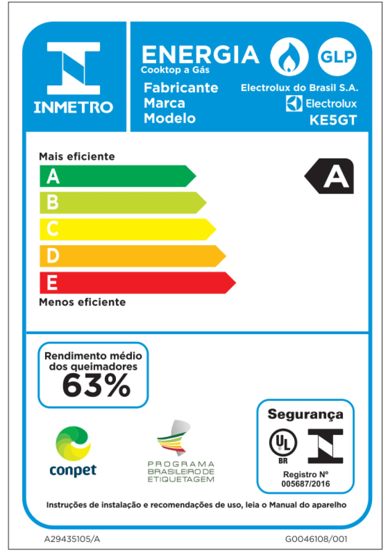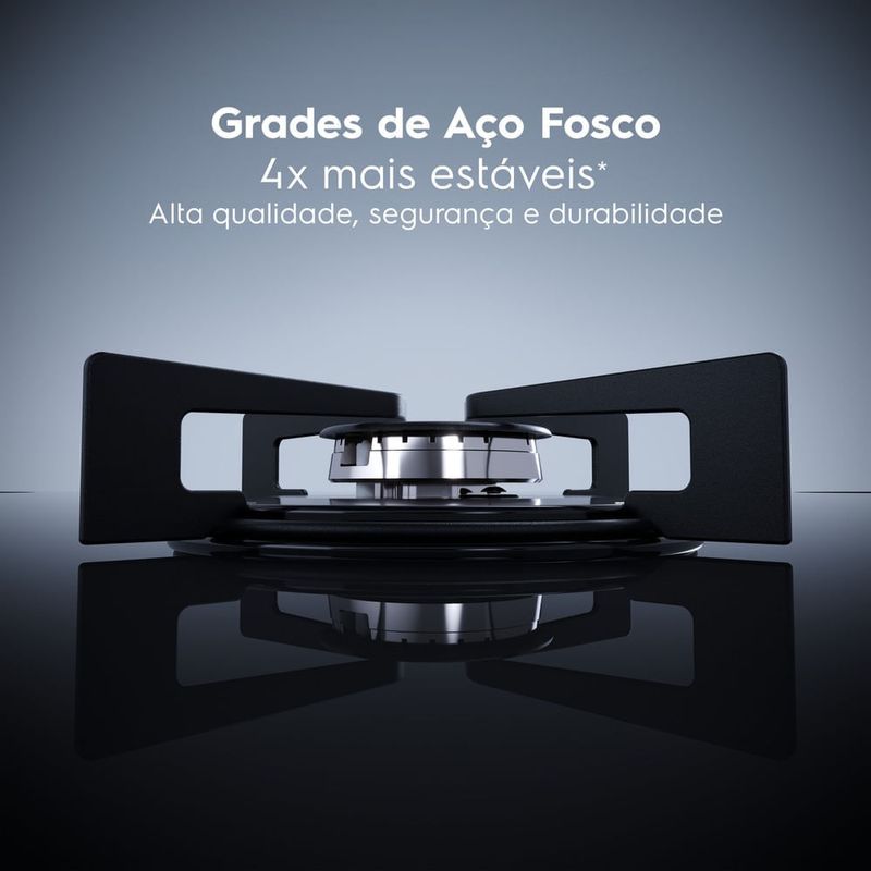 O Cooktop 5 Bocas Gás Electrolux Mesa de Vidro Efficient Tripla Chama e Grade Aço Fosco (KE5GT) traz modernidade e eficiência para sua cozinha. O queimador Tripla Chama oferece mais agilidade na hora de cozinhar. A potência desse queimador permite alcançar resultados incrivelmente saborosos em menos tempo. Ele assegura uma distribuição de calor equilibrada e potente. Isso faz com que a comida aqueça por igual, assegurando um cozimento uniforme. Além disso, o queimador não danifica as panelas, o que contribui para a durabilidade dos seus itens de cozinha.As grades de quatro apoios são feitas de aço com acabamento fosco e proporcionam aderência perfeita ao fundo das panelas. São 4x mais estáveis, garantindo alta qualidade, segurança e durabilidade no uso diário. Enquanto isso, os Queimadores Selados dão maior estabilidade à chama, evitando que o fogo se apague.É alta potência, precisão e elegância. Com o Cooktop 5 Bocas Electrolux Gás Efficient, você tem um aliado poderoso: a potência total de 11.200 W dos queimadores garante um cozimento rápido e eficiente, que acelera o preparo das receitas.A mesa de vidro temperado é a escolha perfeita para levar modernidade para a cozinha ao mesmo tempo que promove uma limpeza prática e sem esforço. Você pode contar com a alta durabilidade e robustez do produto, que é feito com materiais e acabamentos resistentes. Outros detalhes que denotam sua qualidade são o Acendimento Automático Super Rápido, que permite ligar a chama com apenas um giro do botão, e os botões removíveis, que podem ser facilmente removidos para uma limpeza prática e completa.O Cooktop 5 Bocas Gás Electrolux Mesa de Vidro Efficient Tripla Chama e Grade Aço Fosco (KE5GT) tem um desempenho classe A no consumo de energia (Inmetro) e é ideal para você preparar suas refeições com mais eficiência e economia.Amplie sua experiência com os acessórios e consumíveis da Electrolux e tenha uma cozinha mais completa, elegante e bem equipada.É recomendado o uso de acessórios originais Electrolux.