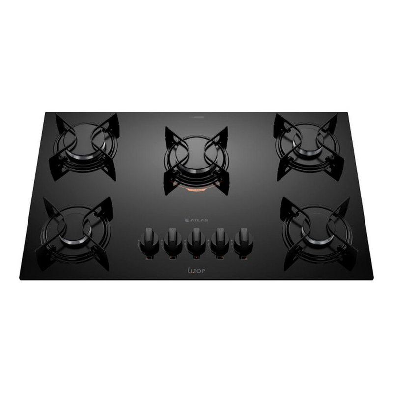Cooktop 5 Bocas Preto Com Mesa De Vidro Atlas U Top Preto BivoltCooktop 5 Bocas Preto com Mesa de Vidro Atlas U TopPensado para o uso diario e sem complicacoes, o Cooktop UTop, alem de ter muito estilo e combinar com todas as cozinhas, possui acendimento superautomatico e 2 queimadores Mega Chama para voce preparar qualquer receita ainda mais rapido. Suas grades sao individuais e de aco esmaltado, que proporcionam maior estabilidade para as panelas e facilitam a limpeza. Por falar em faxina, os botoes removiveis e o vidro temperado ultra resistente tambem contribuem para uma limpeza rapida e pratica, preservando ainda mais o produto. Caracteristicas: Marca: Atlas Modelo: U Top Quantidade de Bocas: 5 bocas Tipo de Acendimento: Superautomatico Acabamento da Mesa: Vidro Temperado Funcionamento: Gas Trempes: Individual de aco esmaltado com 4 pontos de apoio Botoes Removiveis: Sim Eficiencia Energetica: A 3 Ramais: (1,65 kW cada) 2 Mega Chama: (2,85 kW) Potencia total de mesa: 10,65 k Comprimento do Cabo de Energia: 96 cm Dimensoes: Altura: 11 cm Largura: 73,5 cm Profundidade: 46 cm Peso: 8,2 kg Garantia do fabricante: 12 Meses