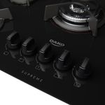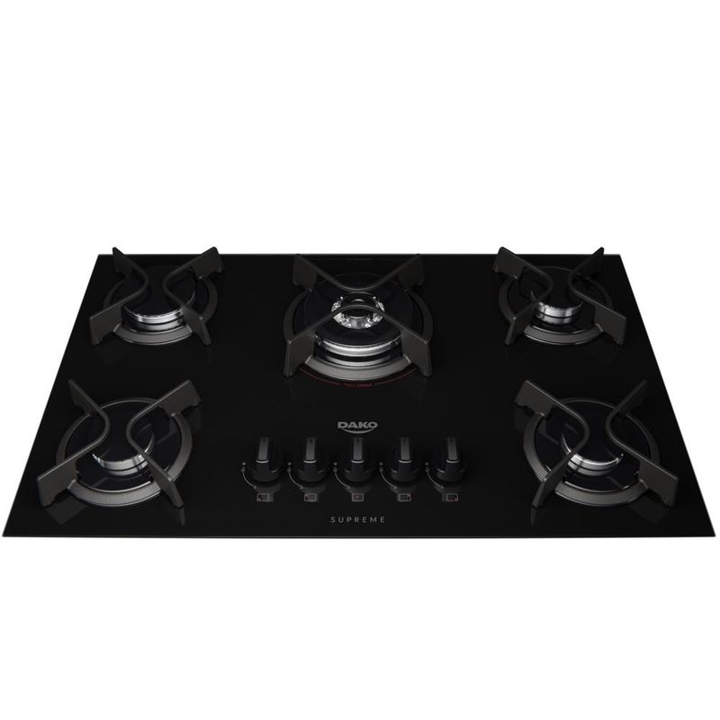 O Cooktop 5 Bocas Preto com Mesa de Vidro e Tripla Chama Dako Supreme Bivolt conta com 3 queimadores de 1,65 kW, 1 queimador Mega Chama de 2,85 kW, 1 queimador Tripla Chama de 3,25 kW e medidas 73,5 x 12 x 46 cm (largura x altura x profundidade). Ficha TécnicaVoltagem: BivoltCor: PretoLinha: SupremeQuantidade de Bocas: 5 bocasTipo de Acendimento: SuperautomáticoGarantia: 12 MesesAcabamento da Mesa: Vidro TemperadoFuncionamento: GásTrempes: Individual de ferro fundido com 4 pontos de apoioBotões Removíveis: SimDimensões do Produto (largura x altura x profundidade): 73,5 x 12 x 46 cmDimensões do Nicho (largura x altura x profundidade): 61,5 x 20 x 36 cmFabricação: NacionalPotência dos Queimadores: 3Q Ramal de 1,65 kW, 1Q Mega Chama de 2,85 kW e 1Q Tripla Chama de 3,25 kWEficiência Energética: AEAN: 7897180509439 A Conversão de Gás é gratuita, se solicitada em até 90 dias após o recebimento do produtoNão realizamos serviço de Instalação. Consulte nosso SAC para indicações de assistência técnica credenciada na sua região. Não faturamos para CNPJ neste canal, conclua sua compra através de um CPF.
