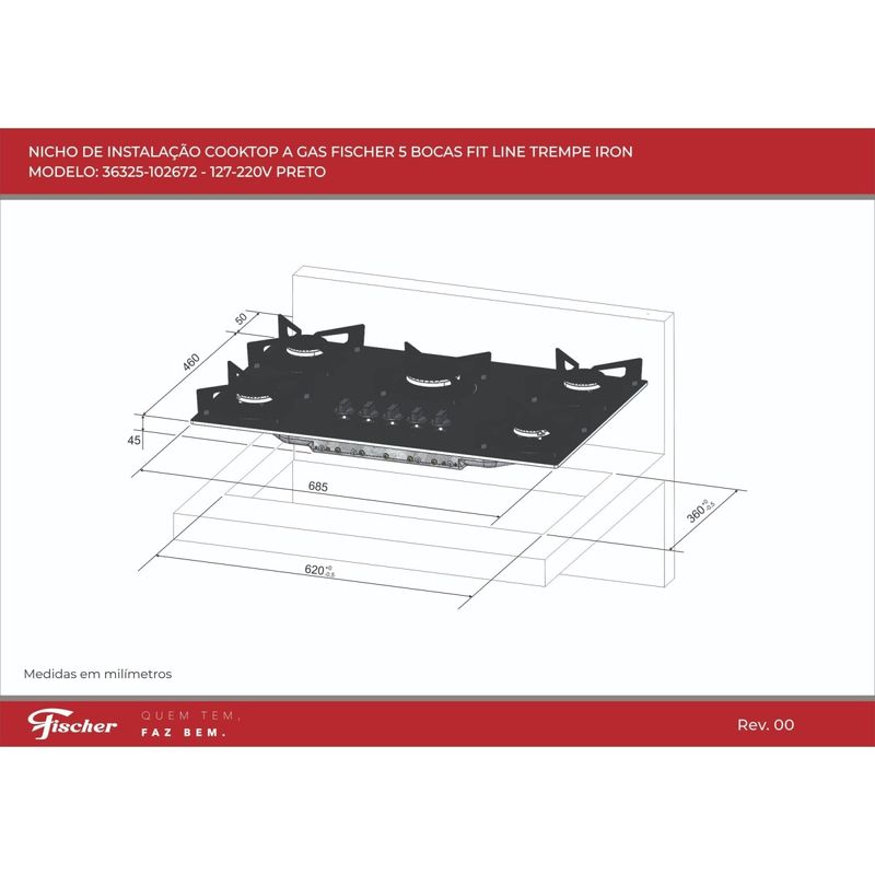 O Cooktop a Gás Fit Line Trempe Iron da Fischer é a solução perfeita para quem busca alto desempenho e sofisticação na cozinha. Com design moderno e funcional, sua mesa em vidro temperado preto oferece elegância e facilidade na limpeza.Com 5 bocas, o cooktop possui trempes Iron esmaltadas, fabricadas com liga de aço e ferro, garantindo robustez, estabilidade para as panelas e praticidade na higienização. Os queimadores italianos entregam eficiência e durabilidade, enquanto o acendimento superautomático proporciona uso intuitivo: girou, ligou!O suporte das trempes conta com acabamento EasyClean, facilitando a limpeza diária. Os manipuladores ergonômicos oferecem conforto no manuseio, e a câmara de gás fechada com fundo compacto otimiza o espaço no armário ou nicho de instalação.Com mais de 58 anos de tradição, a Fischer é referência em qualidade e inovação, sendo líder no segmento de cooktops. Aposte no Cooktop Fischer 5 bocas e transforme sua cozinha com tecnologia, segurança e estilo.Que tal combinar esse cooktop com um super conjunto de panela? Aproveite agora mesmo!