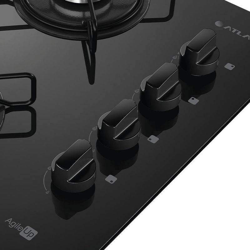 Cooktop A Gás Atlas 4 Bocas Agile Up Preto BivoltFeito para impressionar, o Cooktop a Gás Agile Up transforma sua cozinha em um espaço elegante e cheio de estilo, com a qualidade que você pode confiar e um preço que vai te deixar de boca aberta.Diga adeus às panelas balançando! As grades individuais com 4 pontos de apoio proporcionam toda a segurança que precisa, sem riscos enquanto cozinha.Com os botões removíveis e o vidro temperado, a limpeza fica ainda mais fácil, removendo qualquer sujeirinha de molho ou gordura, sem complicação. Já a função Girou, acendeu te dá toda a conveniência que precisa ao iniciar qualquer preparo. Agora, imagina ter tudo isso na sua cozinha com um preço que cabe no seu bolso?!O Cooktop a Gás Agile Up tem tudo que você precisa em um só produto, oferecendo qualidade, economia e estilo sem comprometer o orçamento.Especificações Técnicas:Marca: AtlasModelo: Agile UpTensão: BivoltCor: PretoQueimadores: 4Botões Removíveis: SimAcabamento da Mesa: Vidro TemperadoTrempe: Individual de aço esmaltado com 4 pontos de apoioFuncionamento: GásTipo de gás (sai da fábrica GLP): GLPAcendimento superautomático: SimClassificação Energética: ATomada (A): 10APlug (A): Plugue 90° Tipo N 2P+T 3A/250VcaPotência (kW): 8Altura: 10,5 cmLargura: 56 cmProfundidade: 43 cmPeso líquido: 6 KgGatantia: 01 Ano (Sendo 3 meses de garantia legal e mais 9 meses de garantia para defeito de fabricação).