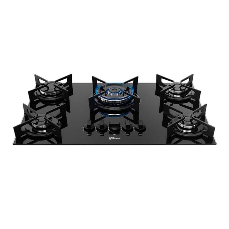 Cooktop a Gás Fischer 5 Bocas Fit Line Tripla Chama Trempe Iron Preto BivoltO Cooktop a Gás Fischer 5 Bocas Fit Line Tripla Chama Trempe Iron foi desenvolvido para quem busca desempenho e uma cozinha ainda mais agradável. Seu design moderno e funcional apresenta uma mesa em vidro temperado preto, com acabamento sofisticado e fácil de limpar. As Trempes Iron são esmaltadas e feitas de uma liga de aço e ferro em sua composição, garantindo robustez e performance, proporcionando estabilidade para as panelas. Além disso, são leves e fáceis de limpar!Este Cooktop Fischer conta ainda com o Tripla Chama mais potente do mercado, com , e trempes com acabamento esmaltado em EasyClean, que torna a limpeza ainda mais prática. Seus manipuladores são ergonômicos e o sistema de acendimento é superautomático, que acende com um simples girar do manipulador, oferecendo um uso intuitivo e eficiente. Equipado com queimadores italianos de alta eficiência e durabilidade, o cooktop possui câmara de gás fechada e um fundo compacto, otimizando o espaço no armário ou nicho de instalação.Especificações Tácnicas:- Cor: Preto- Voltagem: Bivolt- Bocas: 5 bocas- Tensão: Bivolt- Tripla chama: Sim- Trempe: Aço esmaltado- Acendimento superautomático: Sim- Tipo de gás: Sai de GLP- ira conversão de GLP para GN: Sim (dentro da )- : 1 ano- Instalação : Não- Consumo de gás: 0,8205 Kg/h- Funcionamento: Gás- Potência das Bocas: 1 tripla chama (, 1 rápido (, 3 semirrápidos (- Bocas seladas: Não- Classificação energética: B- Acessórios da embalagem: Manual de instruções e 4 tiras de espuma para vedação