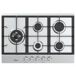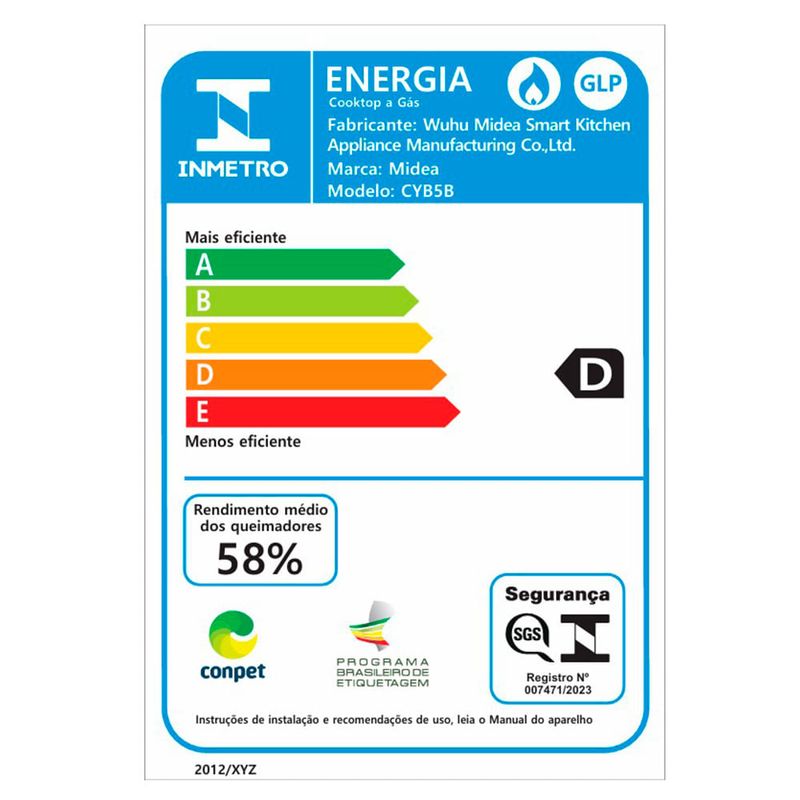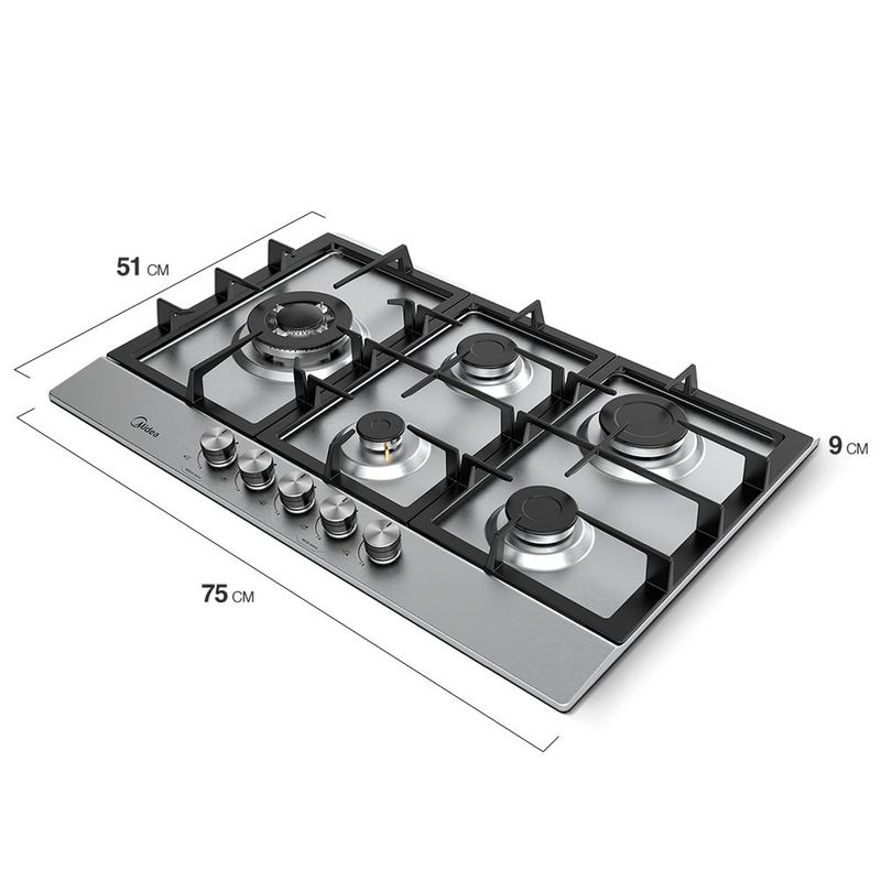 O cooktop Inox 5 bocas Inox Midea traz sofisticação para sua cozinha, pois conta com queimadores de alto rendimento em Tripla e MegaChama, além de sua mesa em inox. Suas grades de ferro fundido oferecem mais resistência e segurança para o cozimento. Possui botões removíveis e acendimento automático para maior praticidade no seu dia a dia. CaracterísticasTipo: Cooktop a GásQuantidade de Bocas: 05Tipo de Acendimento: AutomáticoTripla ChamaMegaChamaNíveis de Potência: 03Grades de Ferro Fundido Especificações TécnicasModelo: CYB5BSelo Conpet (Eficiência Energética): DTipo de Gás: GLP ou GNMaterial: Aço InoxCor: InoxVoltagem: BivoltEAN: 7908198004981Garantia: 12 meses Dimensões e PesoDimensões do produto sem embalagem (AxLxP): 90x750x510 mmDimensões do produto com embalagem (AxLxP): 188x833x598 mmPeso do produto sem embalagem: 12,60 KgPeso do produto com embalagem: 15,30 Kg Itens Inclusos01 Cooktop