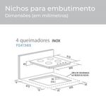 Cooktop à Gás Suggar 4 Queimadores Inox Bivolt FG4134IXO Cooktop à Gás Suggar 4 Queimadores Inox Bivolt FG4134IX dá uma cara nova e moderna para sua cozinha, e é opção ideal para quem não abre mão de beleza e praticidade na hora de preparar as refeições. Seus queimadores possuem diferentes tamanhos e seus botões multicontrole são removíveis. É um produto eficiente, super fácil de limpar e possui um design moderno, que certamente deixará sua cozinha super elegante.Especificações Técnicas:- Marca: Suggar- Ref.: FG4134IX- Cor: Inox- Tensão: Bivolt- Acendimento: Elétrico- Alimentação: Gás- Material: Aço inox- Material trempes: Esmaltadas antideslizantes- Material dos queimadores: Ferro fundido- Potência térmica: 8.61 kW- Quantidade de queimadores: 4- Acendimento: Super automático- Tripla chama: Sim- Quantidade de queimadores: 4- Acendimento automático: Sim- Quantidade de queimadores semi-rápidos: 1- Quantidade de queimadores rápidos: 1- Material da mesa: Aço inox- Botões removíveis: Sim- Quantidade de níveis de potência: 4- Queimador Auxiliar: Sim- Peso: 7 kgPotência Queimadores:- Auxiliar: 0,95 kW- Semirrápido: 1,65 kW- Rápido: 2,8 kW- Tripla Chama: 3,3 kWDimensões do Produto:- Altura: 11,5 cm- Largura: 59 cm- Profundidade: 51 cmDim. nicho embutir:- Altura: 47,5 cm- Largura: 55,5 cm- Profundidade: 2 cmDimensões aproximadas da embalagem:- Altura: 14 cm- Largura: 63 cm- Profundidade: 55 cmImagens meramente ilustrativas.Garantia: 12 Meses