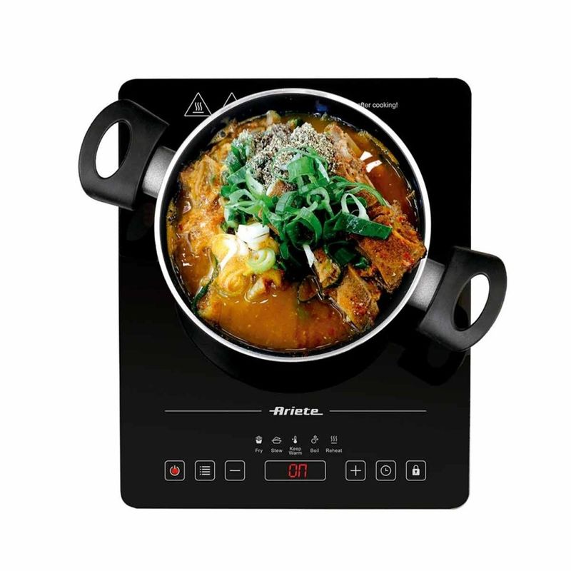 O Cooktop de Indução Portátil Ariete 1997 foi projetado para a sua cozinha, mas é uma excelente solução versátil para vários contextos: como viagens, acampamentos ou escritório. Com potência máxima de 2000W, garante cozimento eficiente e ultrarrápido para panelas de até 28cm de diâmetro. Seu tamanho e características o tornam adequado para ambientes onde o espaço é limitado. Possui 10 níveis de potência e 5 programas predefinidospara preparar suas receitas favoritas com apenas um toque na vitrocerâmica do cooktop, fácil de limpar. - Destaques:• Sem perda de calor: Mantém a temperatura constante e a placa vitrocerâmica garante uma distribuição uniforme do calor. Escolha qualidade para uma cozinha de última geração!Tudo com um simples toque Monitorize e ajuste facilmente as definições a partir dovisor digital, o que torna a cozedura mais intuitiva e eficiente.• Ajustes: temperatura de até 240°, níveis de potência, programas predefinidos, tempo ajustável de até 4 horas e bloqueio para crianças.• Compatibilidade: O cooktop de indução é compatível companelas com diâmetro de até 28 cm, para todas as necessidades de cozimento.• Programas: Escolha oprograma predefinidoideal para cozinhar sua receita com um simples toque Cozinhe em qualquer lugar• Para acampar, no escritório ou na cozinha: o cooktop de indução adapta-se a todas as necessidades e pode levá-lo facilmente para qualquer lugar• Fácil de limpar: Graças à placa vitrocerâmica, a limpeza é rápida e fácil - Especificações:• Cor: Preto• Potência: 2000W• Níveis de potência: 10• Temperatura: até 240°• Placas vitrocerâmicas (bocas): 1• Diâmetro da panela: 28cm• Visor digital com tela sensível ao toque: Sim• Cozimento ultrarrápido: Sim• Desligamento automático: após 2 horas• Largura: 29cm• Altura: 4,5cm• Comprimento: 37cm