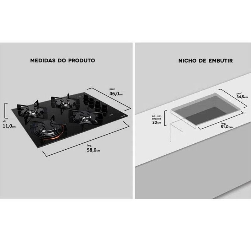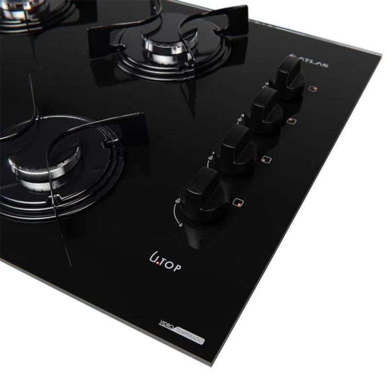 Cooktop Atlas U.top 4 Bocas Acendimento Automático Preto BvoltA confiabilidade e durabilidade da Atlas, agora, com design renovado. O Cooktop Atlas U.Top conta com design moderno e acabamento ultra resistente. Perfeito para combinar com toda a sua cozinha. Ele conta com acendimento automatico, mais facil e mais rapido. Grades individuais de aco esmaltado, acabamento top e que garante mais firmeza. Queimadores potentes para cozinhar com mais eficiencia.CaracteristicasQueimadores: 4Mega Chama: SimAcendimento: super automaticoMesa: vidro temperadoTrempes: individuais em aco temperado3 Ramais: 1,65 kW cada1 Mega Chama: 2,85 kWPotencia total de mesa: 7,8 kWN Registro Inmetro: - 006109/2014Dimensoes do nicho de embutir AxLxP: 20 x 51 x 34,5cmDimensoes:Altura: 11 cmLargura: 58 cmProfundidade: 46 cmPeso: 6,50 kgGarantia: 12 meses