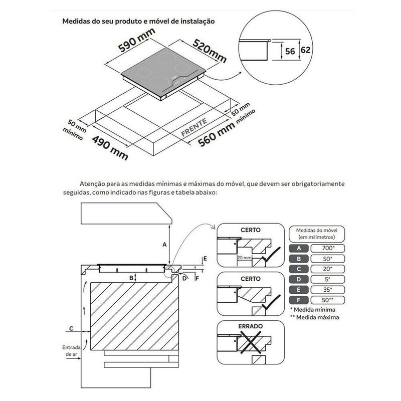 Cooktop De Indução 4 Bocas Dako Supreme Preto 220VCooktop de Indução 4 Bocas Preto com Trava de Segurança Dako Supreme 220V: cozinha segura e sem segredo. O Cooktop de Indução Supreme foi desenvolvido para os apaixonados por modernidade e tecnologia que não abrem mão de segurança e praticidade quando o assunto é cozinhar.Seu design minimalista impressiona! Com o seu indicador de calor residual, o detector de panela e a trava de segurança no painel touch você tem a combinação perfeita de segurança, garantindo que o produto não seja acionado incorretamente ou alterado, assegurando também o cuidado com as crianças.Características:Mais rápido que cozinhar com a função turbo na nona potência, será a sua limpeza.Sem que seja necessário esfregar, a mesa ultra resistente ficará sempre brilhante.Não basta qualquer Cooktop. Tem que ser Cooktop Supreme!A versão possui 4 zonas de cocção com 1,5 kW e até 9 níveis de potência por zona, sendo turbo nas zonas dianteira esquerda e na traseira direta, chegando até 2 kW.Especificações Técnicas: Marca: DakoLinha: SupremeRef.: 400000350Voltagem: 220VCor: PretoPotência total: 7000WQuantidade de Bocas: 4 bocasTipo de Acendimento: InduçãoAcabamento da Mesa: VitrocerâmicoFuncionamento: InduçãoTrempes: Não possuiBotões Removíveis: NãoComprimento do Cabo de Energia: 96 cmFabricação: ImportadoEficiência Energética: AConversão de Gás: Não se aplica a esse produtoServiço de Instalação: Não realizamosPotência dos Queimadores: 4 zonas de 1,5 kW, sendo 2 zonas com turbo para 2 kWDimensões Aproximadas do Produto (LxAxP): 59 cm x 6 cm x 52 cmDimensões Aproximadas do Nicho (LxAxP): 56 cm x 20 cm x 49 cmPeso Aproximado: 11kgImportante: Imprescindível à conferência no ato da entrega. Em caso de anormalidade, recuse o recebimento.Imagens meramente ilustrativas.Garantia de 12 meses contra defeitos de fabricação, de acordo com as normas do fabricante.Cooktop de Indução 4 Bocas Dako Supreme Preto 220v
