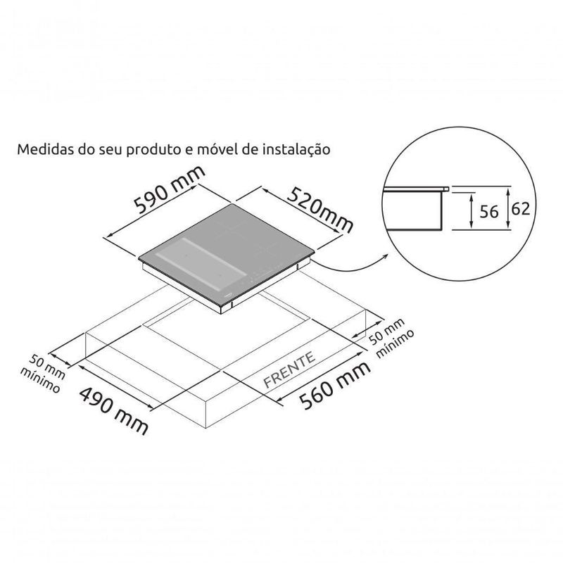 Cooktop De Indução 4 Bocas Preto Com ível Dako Diplomata 220VCooktop de Indução 4 Bocas Preto com ível Dako Diplomata 220V: desperte sua criatividade na cozinha e crie pratos incríveisO cooktop de indução Diplomata com ível é perfeito para os apaixonados por tecnologia. A ível se adapta perfeitamente à todas as suas necessidades, permitindo que você cozinhe em recipientes de tamanhos e formatos variados, como por exemplo panelas grandes ou pequenas, chapas ou grills, sem comprometer a eficiência e agilidade do cozimento.Com os 9 níveis de potência, além da função turbo, você estará no controle total durante o preparo dos alimentos. Você pode ajustar a potência de acordo com a receita, obtendo resultados perfeitos para todos os tipos de preparo. E quando precisar manter os alimentos aquecidos antes de servir, o modo Manter Aquecido será o seu aliado.O Painel Touch com slide control é intuitivo e fácil de usar: basta deslizar o dedo suavemente para selecionar a potência desejada. Quer mais funcionalidades? O cooktop possui trava de , que ajuda a evitar acidentes; indicador de calor residual, que alerta quando a superfície ainda está quente após o uso; e o detector de panela, que garante que o cooktop só funcione quando uma panela estiver devidamente posicionada.Dica: para garantir o melhor funcionamento deste Cooktop, é recomendado o uso de panelas com fundo de liga de ferro. Para validar se a base da panela é , basta verificar se um imã se adere a ela, indicando que de fato é apropriado para a indução.Ficha TécnicaFabricação: Linha: DiplomataCor: PretoVoltagem: 220VFuncionamento: InduçãoQuantidade de Bocas: 4 bocasAcabamento da Mesa: VitrocerâmicoDimensões do Produto (largura x altura x profundidade): 59 x 6,2 x 52 cmEAN: 7897180510282Eficiência Energética: AComprimento do Cabo de Energia: 96 cmPadrão de Tomada: Circuito elétrico dedicado para o produtoGarantia: 12 MesesDimensões do Produto (largura x altura x profundidade): 59 x 6,2 x 52 cmPainel Touch: SimTrava de ,: SimIndicador de calor: SimDetector de Panela: SimNíveis de Potência: 9Função Turbo: SimPotência Total: 7000 W