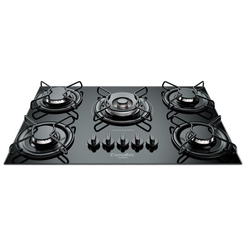 Cooktop Esmaltec 5 Bocas - Tripla Chama Acendimento superautomático: Acende ao pressionar e girar o botão. Trempes individuais: Mais modernas e fáceis de limpar.Queimador Wok-5Q – Tripla chama: Três anéis de chama. Agilidade e potência no preparo dos pratos.Mesa em vidro temperado: Qualidade e alta resistência.Botões removíveis: Facilita a limpeza do produto.Classificação A em eficiência energética: Mais econômico no consumo de energia.Botões removíveis facilita a limpeza do produto.Classificação A em eficiência energética mais economia no consumo de energia.Cor: Preto | Tipo de Fogão: Mesa | Tipo de Mesa: Vidro | Quantidade de Bocas: 5 bocas | Tipo de acendimento: Super-Automático | Tipo de Alimentação: Gás | Dimensões sem embalagem AxLxC (mm): 55 x 685 x 460 | Classif. Mesa: A | Voltagem: Bivolt