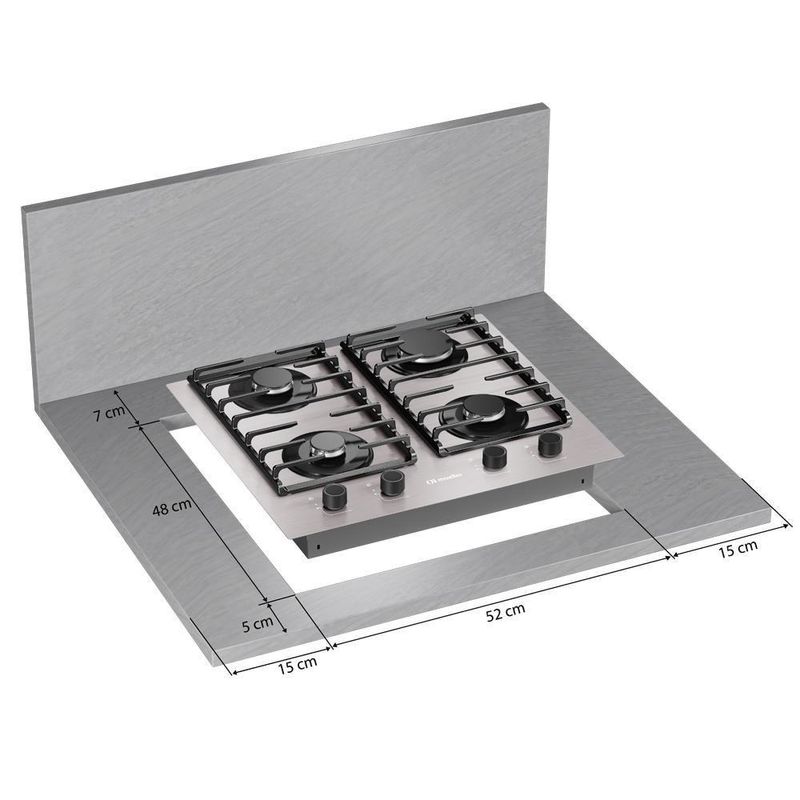 Cooktop Mueller 4 Bocas De Alumínio 59cm Com Grade Dupla MCG4BL BivoltO Cooktop Mueller 4 Bocas de Alumínio une design industrial e funcionalidade, trazendo sofisticação e robustez para a sua cozinha. Sua mesa de alumínio com acabamento escovado e anodizado oferece um visual moderno e durabilidade superior. Com uma área maior que os cooktops convencionais, ele permite que você utilize mais bocas ao mesmo tempo, com espaço extra entre as panelas, facilitando o preparo de diversas receitas.As grades duplas em ferro fundido com acabamento esmaltado garantem maior estabilidade para as panelas e facilitam o deslocamento durante o preparo. Equipado com três tipos de queimadores, você encontra a potência ideal para cada prato: desde o fogo mais intenso para cozinhar rapidamente até o mais delicado para preparos precisos.O acendimento superautomático torna o uso ainda mais prático: basta girar o botão para acender e controlar a chama. Ideal para quem valoriza um estilo moderno e precisa de potência e versatilidade no dia a dia da cozinha.Informações Técnicas:Marca: MuellerModelo: MCG4BLQuantidade de bocas: 4Tipo de montagem: De EmbutirVoltagem: BivoltTipo do Fogão: Fogão de Mesa a GásTipo de Acendimento: SuperautomáticoMesa: Vidro Temperado PretoGrades de Mesa: Grades Duplas em Ferro FundidoBotões: RemovíveisQueimador Ultra Chama: 2400 watts de potênciaQueimador Semirrápido: 1700 watts de potênciaQueimador Auxiliar: 1200 watts de potênciaTipo de Gás: GLP (Conversível para GN)Classificação Energética: AAltura: 10,5 cmLargura: 59 cmProfundidade: 52 cmDimensões do Nicho: 52 cm x 48 cmPeso: 9,1 kgGarantia: 12 mesesImportante:Na hora de instalar seu cooktop, observe se o regulador de gás e a mangueira estão dentro da validade. Confira o ano de vencimento gravado no regulador e também na mangueira. Eles não devem ser utilizados por mais de 5 anos. Ao comprar um regulador novo, observe a medida kg/h. Reguladores de 1 kg/h são ideais para os tradicionais eletros de 4 bocas, já os de 2 kg/h são recomendados para eletros de 5 bocas ou com queimadores como o Tripla ou Dupla Chama.