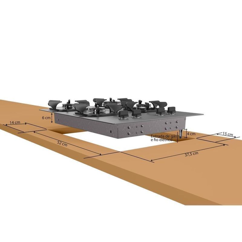 Cooktop Mueller 4 Bocas De Alumínio Com Queimador Ultra Chama Mcg4bk Com o Cooktop Mueller 4 bocas MCG4BK você tem muito mais para cozinhar suas receitas favoritas. Com grades de ferro fundido com 6 pontos de apoio e sistema exclusivo de encaixe que garantem mais estabilidade e no encaixe das panelas.Possui acendimento superautomático que garante mais agilidade no preparo dos alimentos.Seus queimadores em aço esmaltado e a mesa em alumínio facilitam sua limpeza.Ele ainda possui 1 Queimador Ultra Chama 2400 Watts de potência, 2 Queimadores semirrápidos de 1700 Watts de potência e 1 Queimador Auxiliar 1000 Watts de potência. Para cada um é indicado o tamanho ideal de panela.INFORMAÇÕES TÉCNICASAltura (cm): 10,5cmLargura (cm): 58,5cmProfundidade (cm): 44cmDimensões do nicho (cm): 52cm x 37,5cmPeso (Kg): 6,8KgBocas: 4 BocasTipo do Fogão: Fogão de mesa a GásTipo de acendimento: AutomáticoMesa: em AlumínioQueimadores: de aço esmaltado em Easy cleanGrades de mesa (quantas): 4 grades individuais em ferro fundido com 6 pontos de apoioBotões: RemovíveisQueimador ultra chama: 2400 watts de potênciaQueimador semirrápido: 1700 watts de potênciaQueimador auxiliar: 1000 watts de potênciaTipo de gás: GLP (Conversível para GN)Voltagem: bivoltIMPORTANTEOs cooktops Mueller saem da regulados e preparados para funcionar com gás liquefeito de petróleo (GLP). Para a conversão do produto para Gás GN é necessário solicitar o de um dos nossos postos autorizados. Assim que receber seu produto, com o Mueller e solicite sua conversão. Será necessário informar o de série do produto. A conversão é dentro do prazo de garantia se o produto não tiver sido utilizado.Na hora de instalar seu cooktop observe se o regulador de gás e mangueira estão dentro da validade. Confira o ano de vencimento gravado no regulador e também na mangueira. Eles não devem ser utilizados por mais de 5 anos. Ao comprar um regulador , observe a medida kg/h. Reguladores de 1 kg/h são ideais para os eletros de 4 bocas, já os de 2 kg/h são recomendados para eletros de 5 bocas ou com queimadores como o Tripla ou Dupla Chama. Mesa: em Alumínio | Marca: Mueller | Peso (Kg): 6,8 Kg | Largura (cm): 58,5 cm | Voltagem: Bivolt | Acendimento: Superautomático | Alimentação: a gás | modelo: Cooktop 4 Bocas MCG4BK | Altura (cm): 10,5 cm | Quantidade de bocas: 4