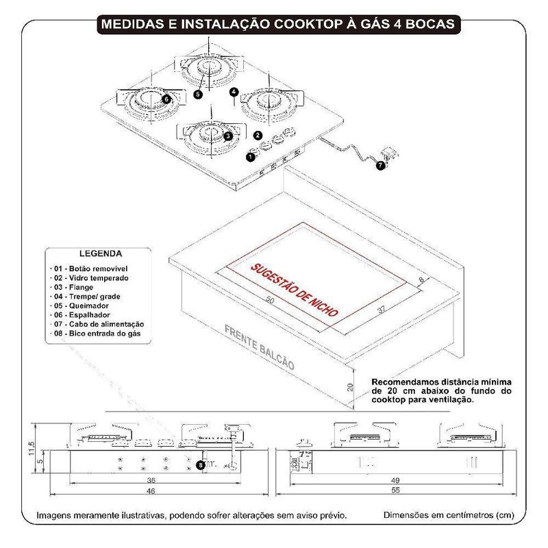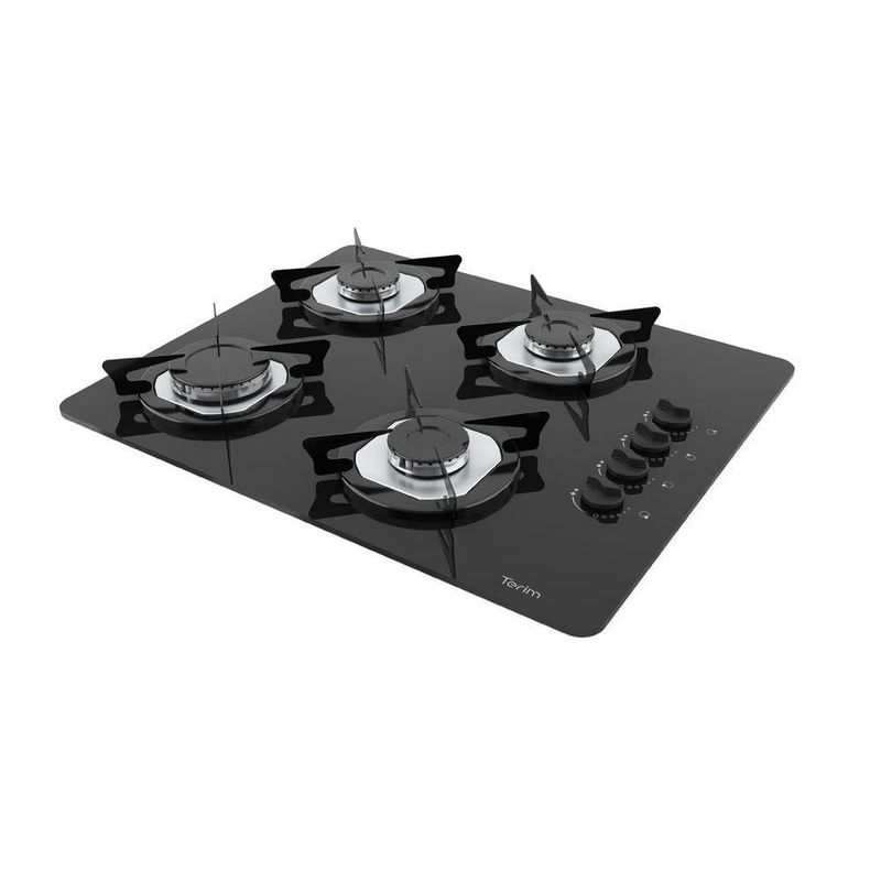 Cooktop Terim à Gás Trm 4b Vidro Preto Flange Inox Preto BivoltOs cooktops da Terim sao perfeitos para sua cozinha. Com mesa de vidro temperado, possui um queimador grande e tres medios, com acendedores inteligentes, que acendem ao girar os botoes. As trempes, grades possuem o exclusivo Sistema Anti rotacao, um sistema que impede que as grades girem ou trepidem, proporcionando muito mais seguranca e praticidade para sua familia. Alem de tudo, possui design diferenciado e e facil de limpar, com botoes removiveis para limpeza. O selo CONPET A certifica o consumo eficiente de energia e possui tambem opcoes de cores diferenciadas.Cooktop, Fogao de mesa de Embutir Caracteristicas Bivolt, serve tanto para 127v quanto para 220v 1 Queimador Rapido, grande 3 Queimadores Semi rapidos, medios Mesa de Vidro temperado de 6 mm Acendedores de Seletor Automatico Inteligente, acendem ao pressionar e girar o botao Trempes, grades em Aco esmaltado, removiveis e lavaveis Sistema de combustao Italiano Exclusivo pino anti-rotacao nas trempes, grades Botoes removiveis para limpeza Flanges Inox Certificacao Conpet A Facil limpeza e design moderno Acompanha vedacao da base Especificacoes Tecnicas Tensao Bivolt Frequencia 60 Hz Consumo 0,142 kWh Potencia 6,3 W para tomada em 127 V e 10,5 W para tomada em 220 V 1 Queimador rapido, grande 3000 W 3 Queimadores semi rapidos, medios 1750 W cada Pressao do Gas 28 a 37 mBar Tipo Gas GLP botijao, nao serve para gas natural de rua Mangueira do gas NAO acompanha o produto, deve ser adquirida a parte Dimensoes do Produto L 55 cm x P 46 cm Dimensoes do Nicho L 50 cm x P 37 cm x A 5,5 cm Peso 7,65 kg Garantia de Fabrica 12 meses Instalacao por conta do cliente Imagens meramente ilustrativas