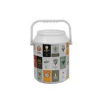 Cooler Clube Empório Retrô com Alça Injetada 12 Latas - Anabell Geleira térmica portátil, com design em formato de latinha e alça injetada. - Quando utilizado com gelo, resfria a bebida sem congelá-la. - Possui corpo e tampa em plástico injetado. - O rótulo apresenta cores vivas e imagem nítida. É bastante resistente e à prova d’água, pois é impresso em lâmina plástica. Não se trata, portanto, de um adesivo, que se rasga e descola facilmente. - Composto, em seu interior, por isopor prensado, o que dificulta a troca de temperatura com o meio ambiente. Capacidade: 12 latas de 350ml + gelo Fabricante: Anabell