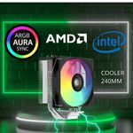 Cooler para Processador Mymax MX202 ARGB 240mm Preto O cooler para processador Mymax MX202 ARGB 240mm Preto oferece refrigeração eficiente e iluminação ARGB personalizável. Compatível com soquetes Intel LGA 115X/17XX e todas as séries AMD, garante baixo ruído e alta durabilidade, mantendo o desempenho do seu equipamento mesmo em uso intenso. CaracterísticasIluminação ARGB personalizávelFluxo de ar: 64.5 CFM ± 10%Velocidade: 800-1800 RPM ± 200Nível de ruído: 37 dBAVida útil: 40.000 horas Informações adicionaisMarca: MymaxModelo: MX202 ARGB UniversalCor: PretoDimensões da ventoinha: 25 x 120 x 120 mmTensão: DC 12 VConsumo de energia: 4,8 WCorrente nominal: 0,4 ATipo de rolamento: Rifle BearingConectores: 4 pinos + ARGB 5V 3 pinosCompatibilidade: Intel LGA 115X/17XX e todas as séries AMDTemperatura de operação: -10°C a 75°C (65% UR)