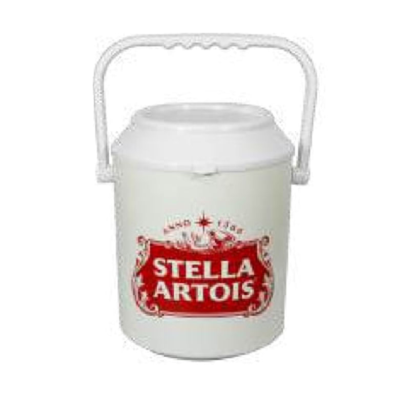 Cooler Quiosque Stella com Alça Injetada 10 Latas - Anabell Geleira térmica portátil, com design em formato de latinha com alça injetada. - Quando utilizado com gelo, resfria a bebida sem congelá-la. - Possui corpo e tampa em plástico injetado. - O rótulo apresenta cores vivas e imagem nítida. É bastante resistente e à prova d’água, pois é impresso em lâmina plástica. Não se trata, portanto, de um adesivo, que se rasga e descola facilmente. - Composto, em seu interior, por isopor prensado, o que dificulta a troca de temperatura com o meio ambiente. Capacidade: 10 latas de 350ml + gelo Fabricante: Anabell