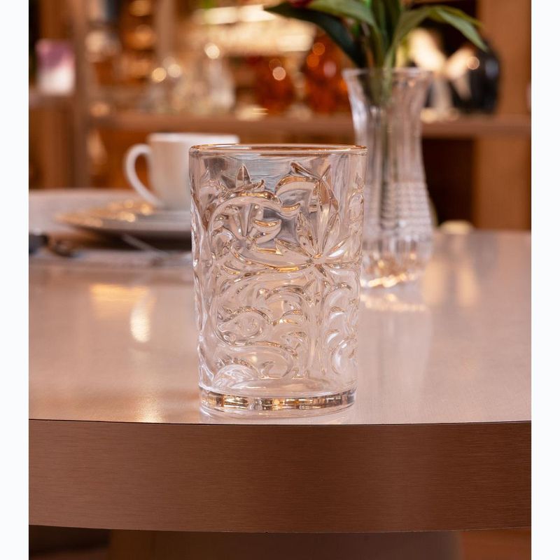 Copo Alto Wolff Arabesco Fio de Ouro 330ml Cristal EcológicoUm toque de luxo à mesa. O Copo Alto Arabesco da Wolff, com acabamento em fio de ouro na borda, une requinte e funcionalidade para servir com estilo.Um toque de luxo à mesa. O Copo Alto Arabesco da Wolff, com acabamento em fio de ouro na borda, une requinte e funcionalidade para servir com estilo.• Cristal ecológicoLeve, brilhante e durável.• Fio de ouro na bordaAcabamento manual que destaca a peça.• 330ml de capacidadePerfeito para servir bem em qualquer ocasião.• Design decorativoRelevo com arabescos que elevam o visual da composição.Com a Wolff, cada detalhe reflete bom gosto e tradição em servir.Contém: 1 Copo AltoMedidas Produto: Altura 11,50cm x Largura 8,00cm x Comprimento 8,00cmPeso: 0,32KgLavar com detergente neutro, esponja macia e secar imediatamente. Não utilizar outros produtos químicos.