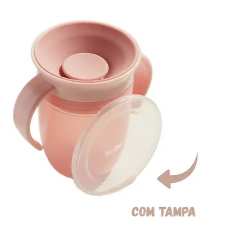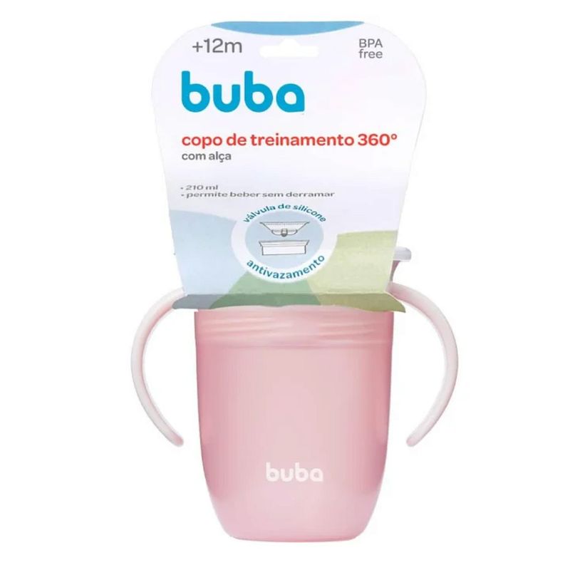 Copo De Treinamento 360 Rosa - Buba Copo de Treinamento 360º com Alça da Buba, ideal para os pequenos que estão aprendendo a beber de forma independente. Com capacidade de 210ml, este copo possui um design inovador que permite que a criança beba de qualquer lado, promovendo a autonomia e a coordenação motora. As alças ergonômicas garantem um manuseio confortável, enquanto a tampa evita vazamentos, tornando-o perfeito para o uso diário. Escolha o Copo de Treinamento Buba e torne o momento da hidratação mais divertido e prático para seu bebê. Marca: buba